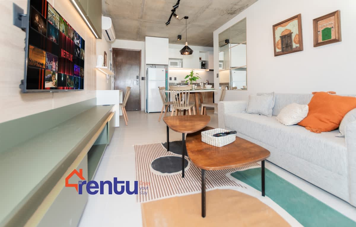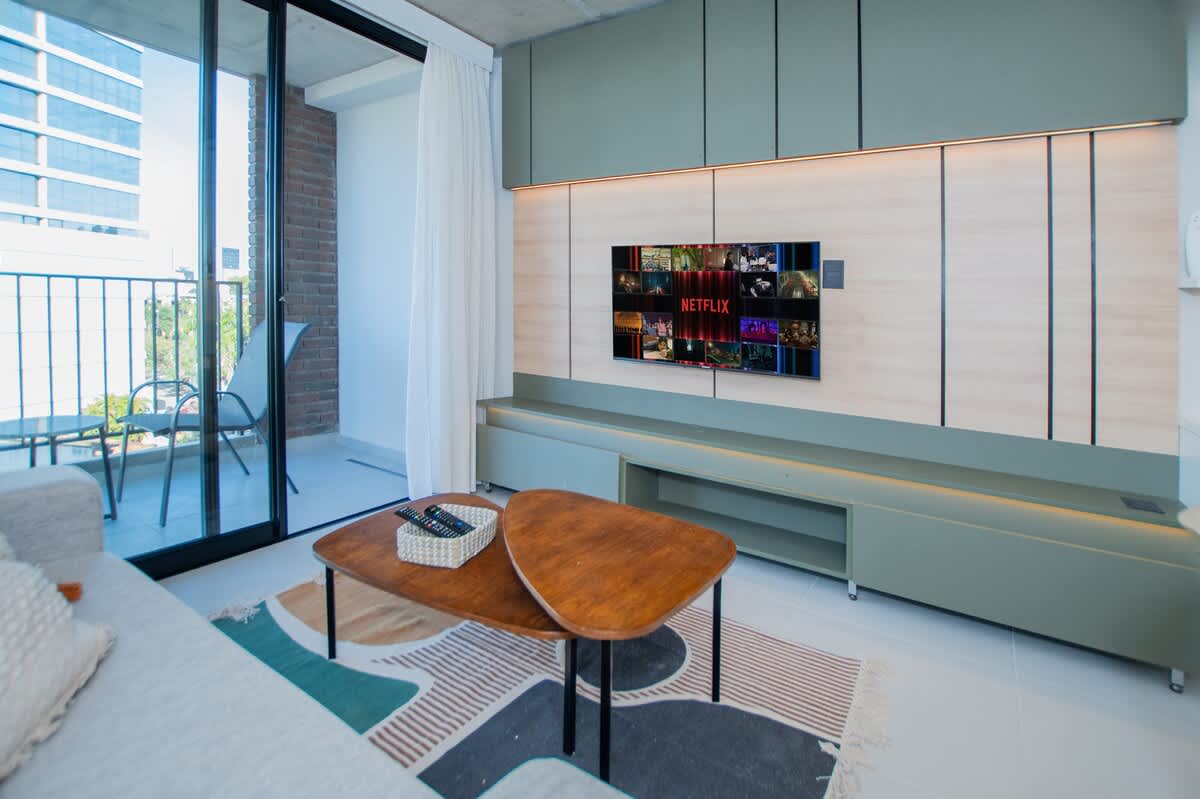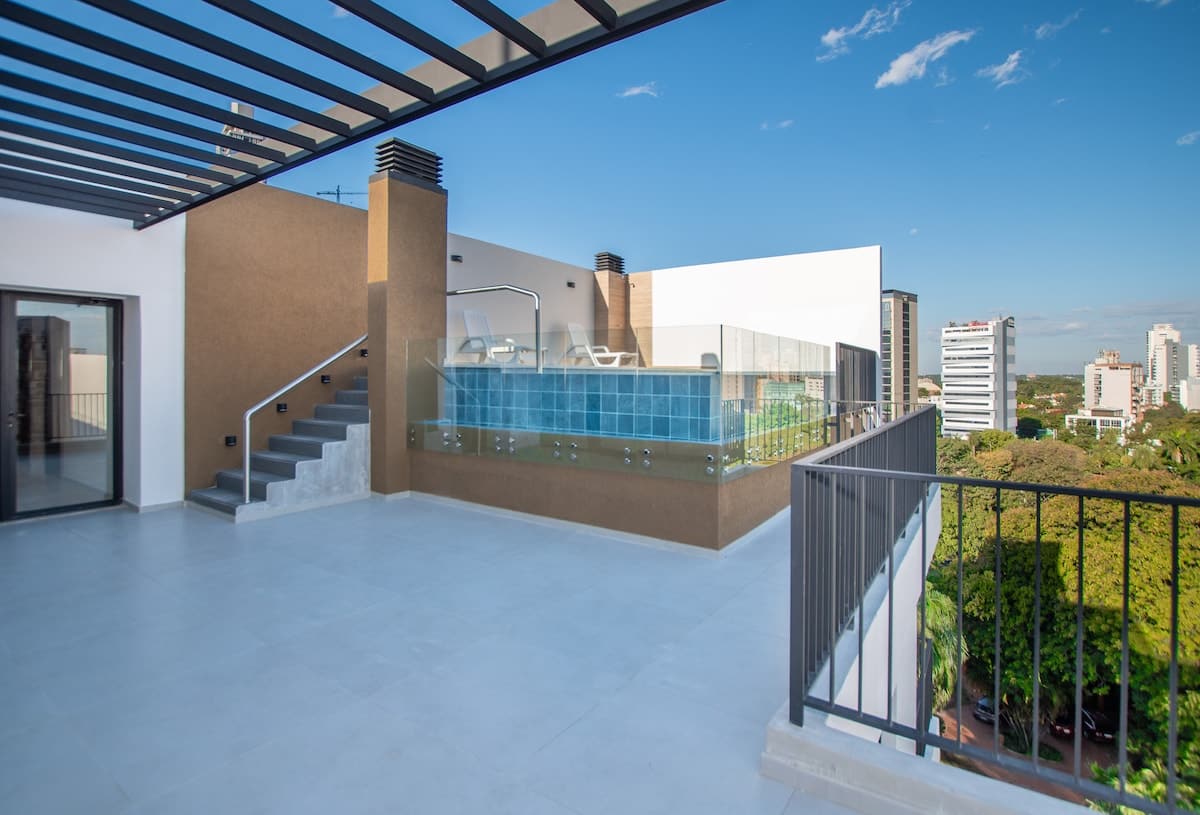 Modern 1BR apartment in prime Asunción location, steps from top shopping centers. Enjoy a full kitchen, and access to amazing building amenities: rooftop pool, gym, movie room, coworking space, and BBQ areas. Designed for short-term stays with 24-hour front desk and a cozy space to relax and feel at home.
