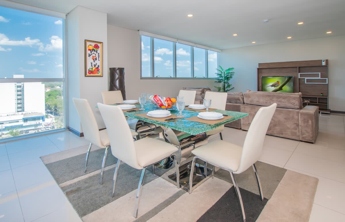 Welcome to our stunning 11th-floor apartment! This modern retreat features three en-suite bedrooms, each offering breathtaking city views. The spacious living area is filled with natural light, creating a warm atmosphere. Located in one of Asuncion’s best neighborhoods, you’re just 3 km from premier shopping centers. The building boasts exceptional amenities, including a state-of-the-art gym, a 25-meter pool, sauna, and squash court. Experience luxury and comfort in this urban oasis.