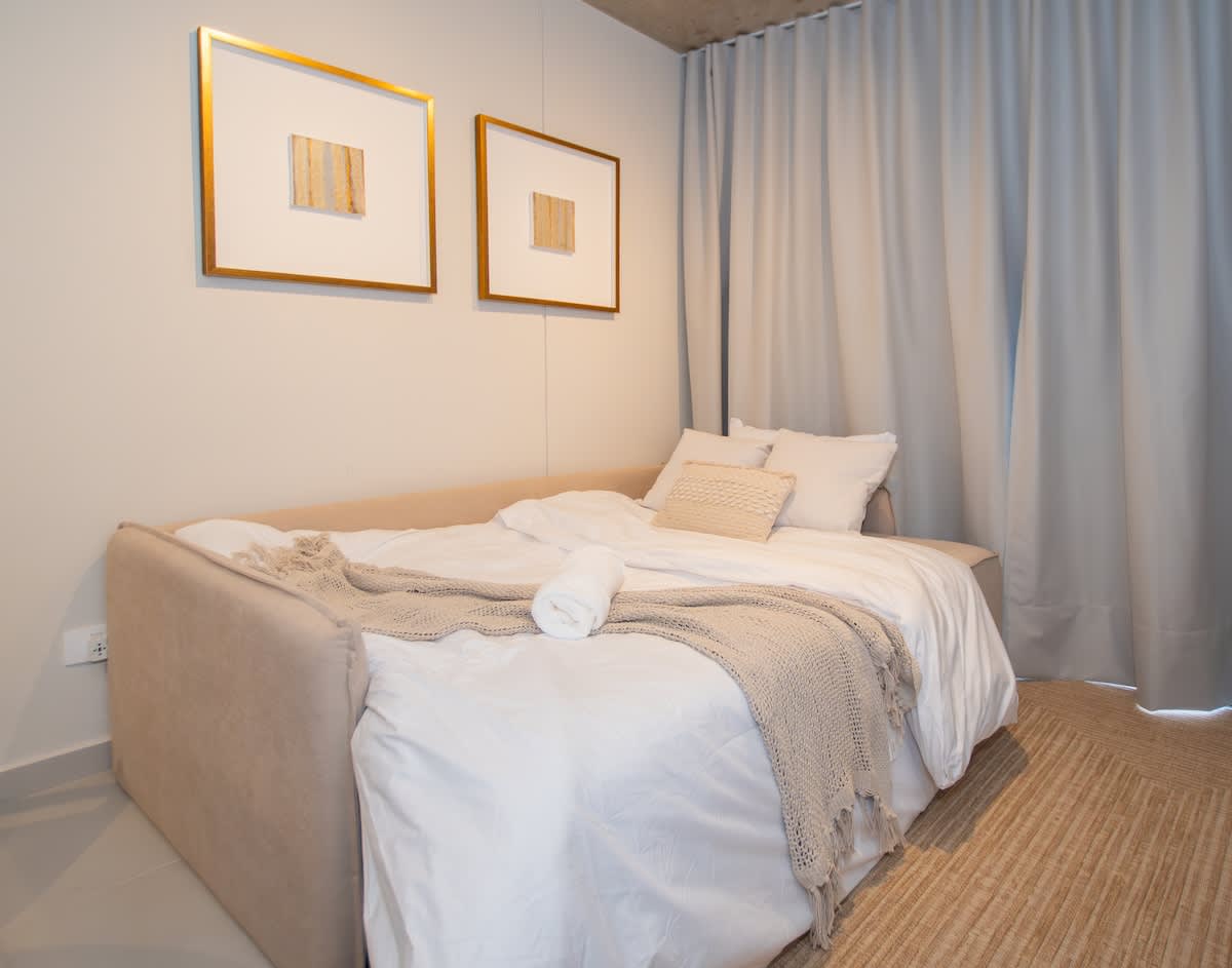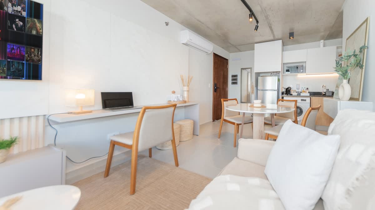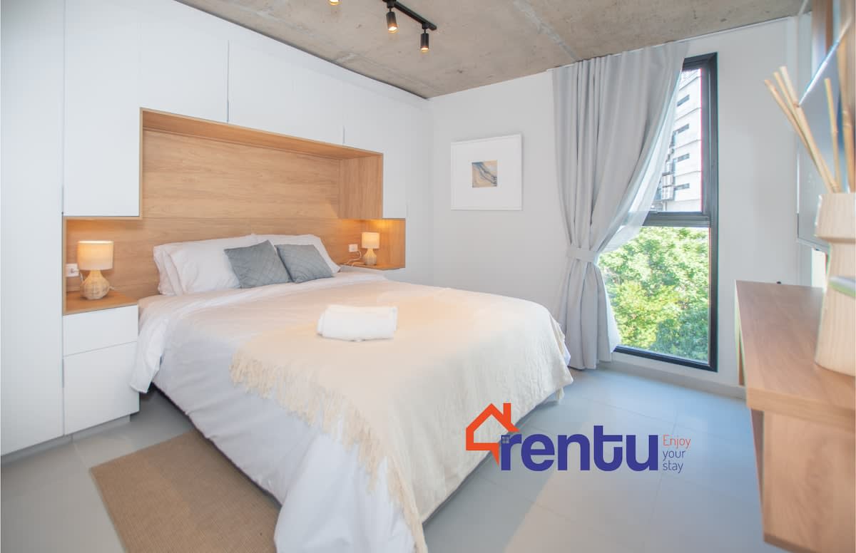 Stay in a stylish apt just steps from top malls in Asunción. This modern building features a rooftop pool, gym, cinema, coworking space, and BBQ areas. Perfect for short stays in a safe, vibrant location. Only 250m from Shopping del Sol. 24-hour security and front desk.