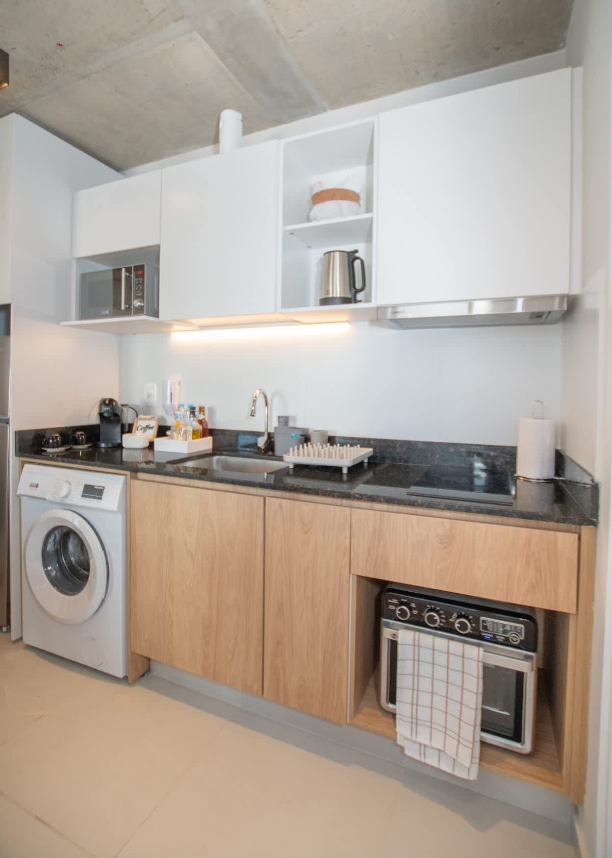Apartamento bonito, funcional e extremamente confortável. Prédio de excelente qualidade. O isolamento acústico é ótimo, pois tinha música alta na rua e não nos incomodou.