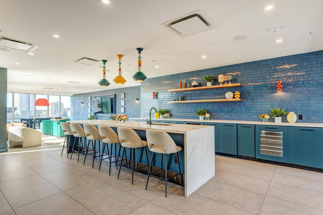 The sleek, modern kitchen includes premium appliances and ample counter space — perfect for preparing anything from quick snacks to full meals.