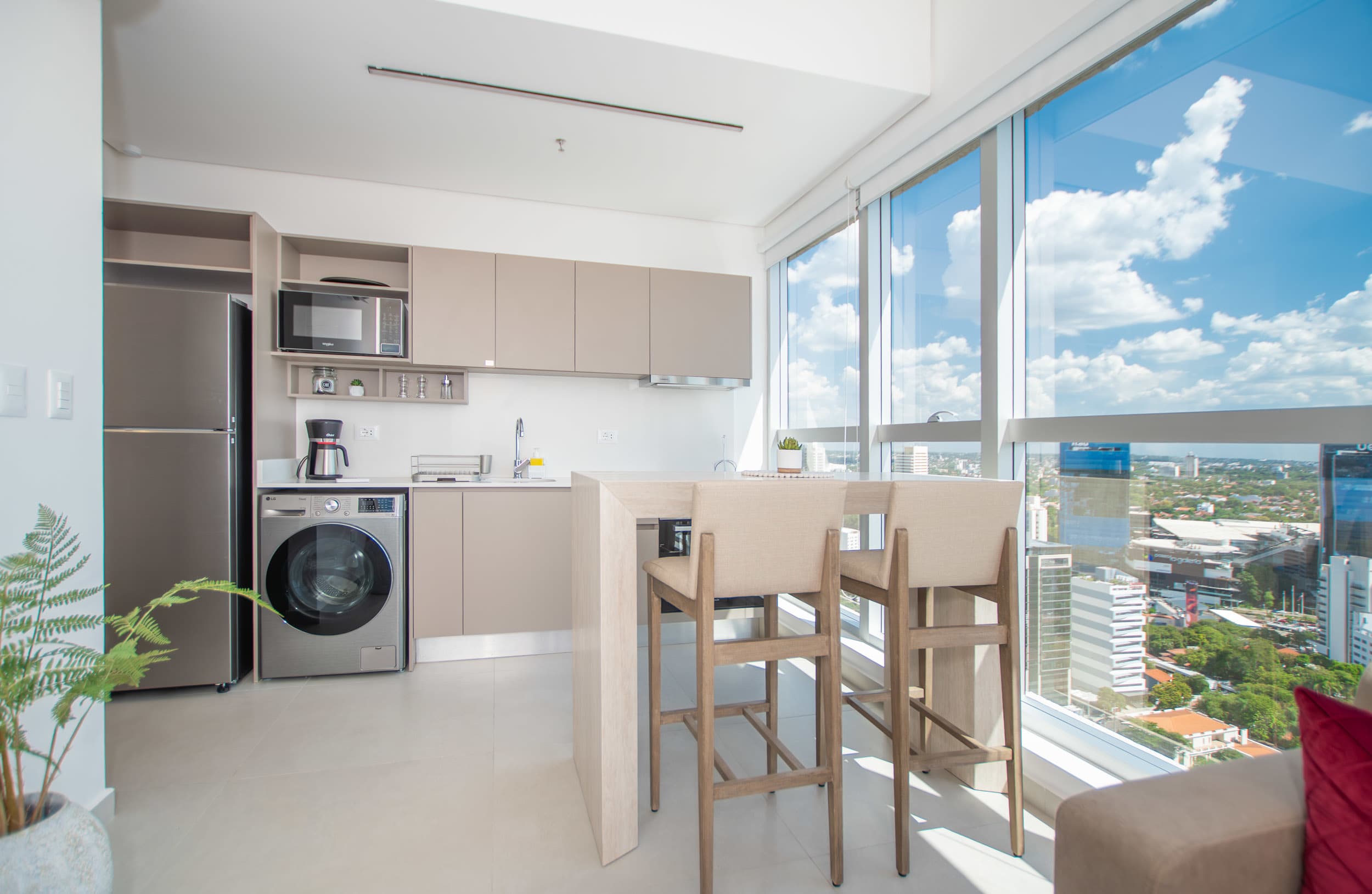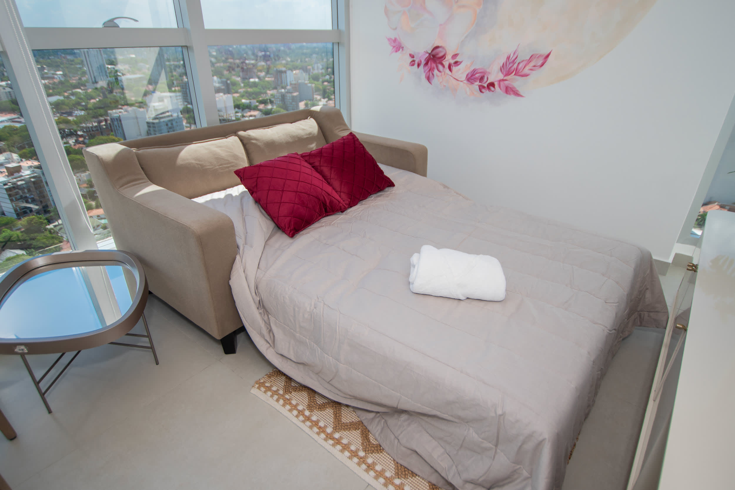 Experience elevated city living in this modern 1-bedroom apartment located in one of Asunción’s most iconic high-rise residences. Designed for comfort and functionality, this fully furnished unit is ideal for business travelers, couples, or long-term stays.