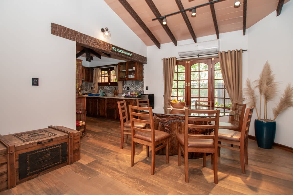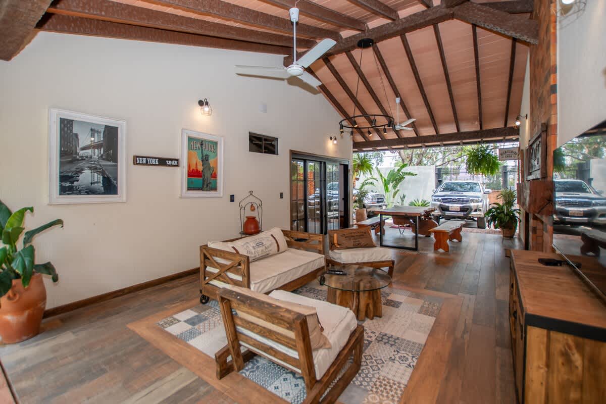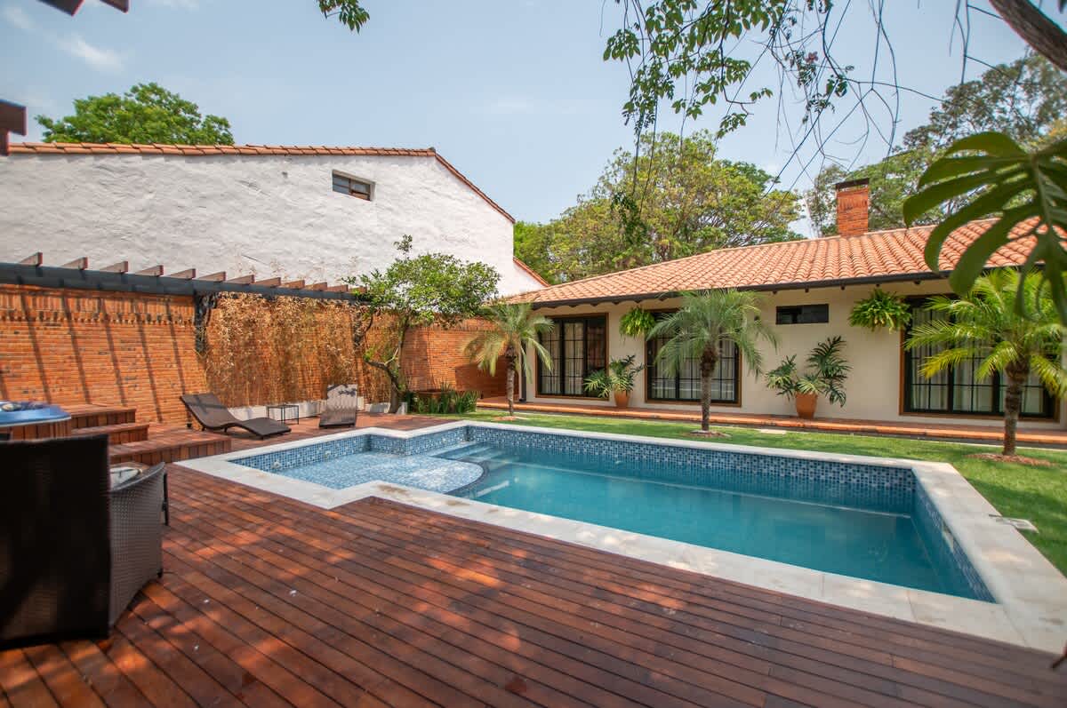 Welcome to your family oasis, where rustic charm meets modern comfort in the heart of the city. This home blends wooden details with contemporary design, offering the perfect space to relax. Enjoy the luxurious jacuzzi and private pool, or gather in the BBQ area for unforgettable moments. Each room has cable TV, and the stylish furniture invites you to feel at home. Whether relaxing by the pool or exploring the city, this is your perfect retreat for lasting memories.