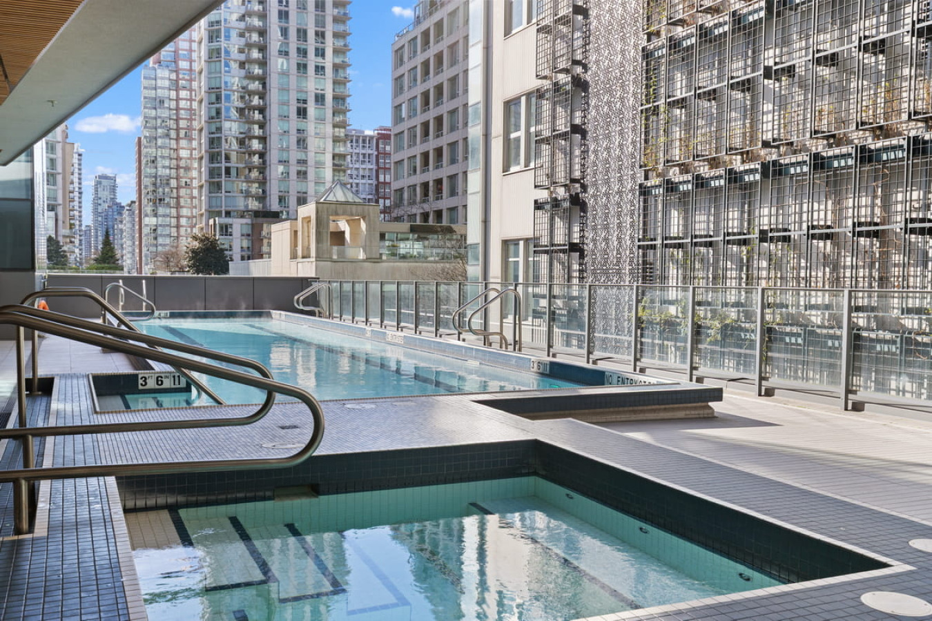 Enjoy the outdoor pool, offering a peaceful setting for swimming or lounging. It’s the perfect place to unwind while soaking in the city views.