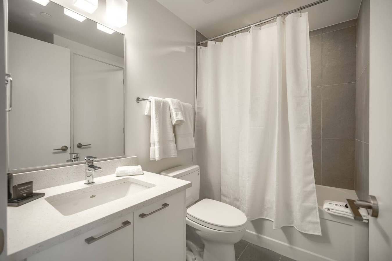 Relax in the peaceful ambiance of the spacious bedroom, designed for ultimate comfort. The queen-size bed offers a restful night’s sleep, while the large closet ensures ample storage. The modern, spa-like bathroom features sleek fixtures, offering a rejuvenating experience for the perfect start or end to your day.