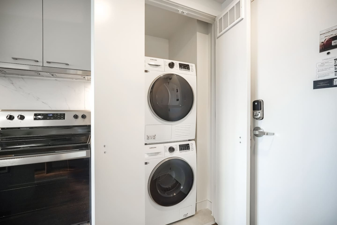 Cook to your heart’s content in the fully equipped, modern kitchen, featuring sleek countertops, premium appliances, and ample storage space. Whether whipping up a quick breakfast or preparing a gourmet dinner, you’ll have everything you need to create a delicious meal in style.