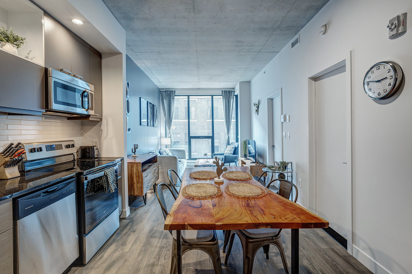 Experience elevated living in a Furnished 1 Bedroom Apartment in Montreal, perfectly located in the heart of downtown. This stylish home on Rue de la Concorde is designed for business travelers, families, and couples looking for comfort, convenience, and modern amenities. Enjoy a spacious layout that blends sophistication with everything you need for both work and leisure.