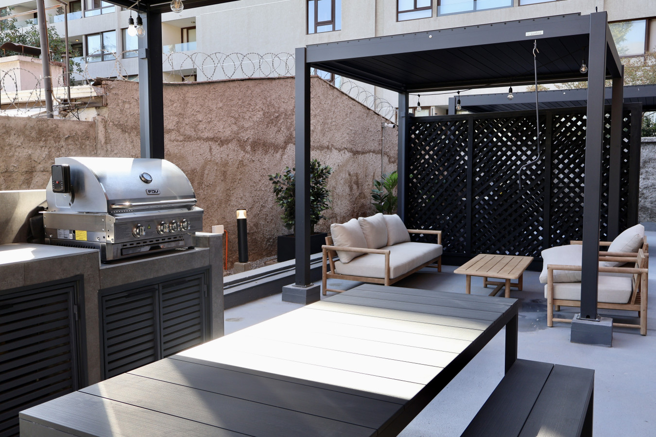 Designed for modern urban living, Somma Asturias features contemporary architecture and thoughtfully planned residential spaces with hard-surface flooring throughout the suites, prioritizing comfort, functionality, and natural light. Secure card-access entry, well-maintained common areas, and a refined atmosphere create a welcoming environment for guests seeking a stylish and convenient stay in one of Santiago’s most dynamic residential areas.