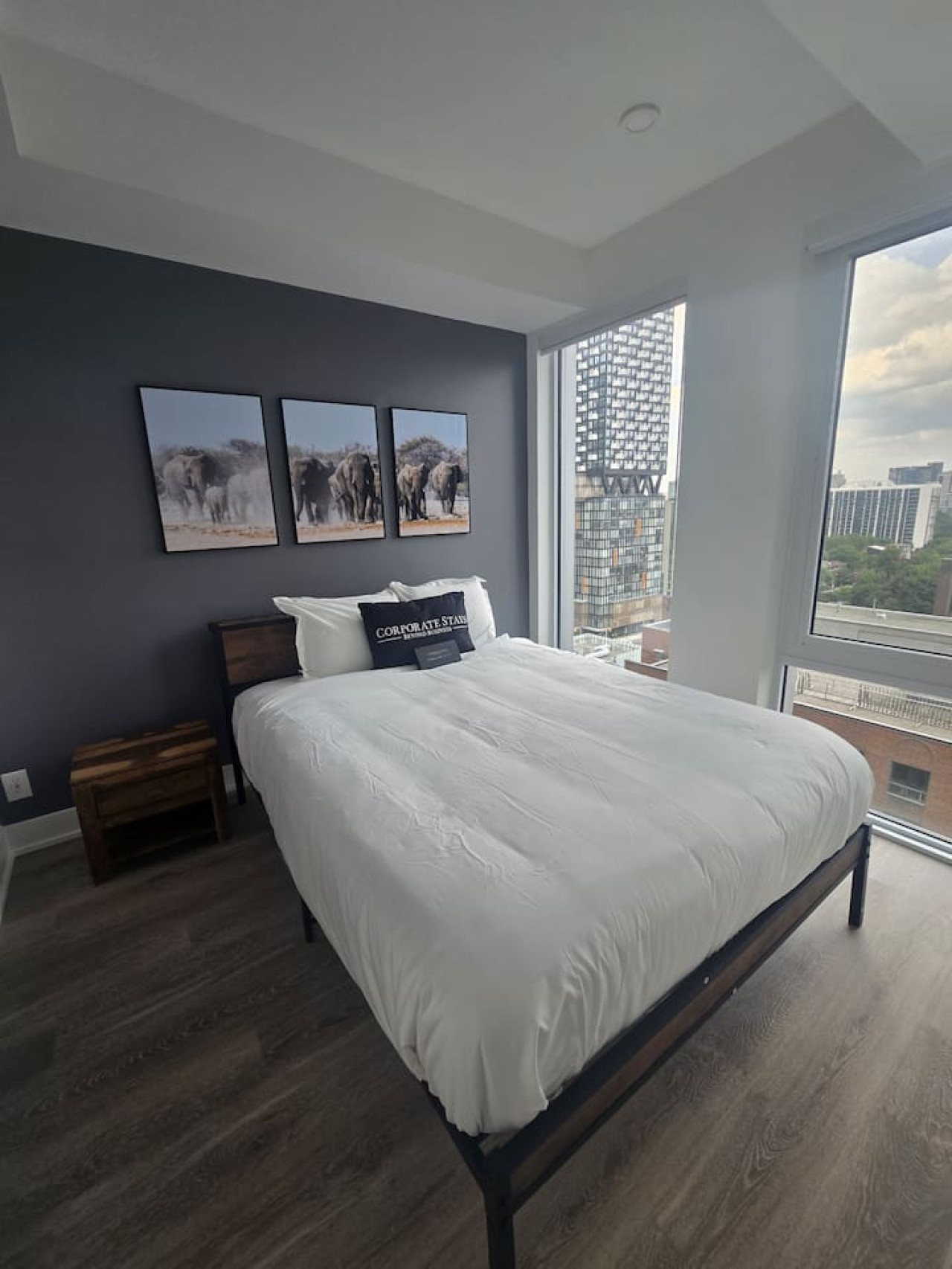 Experience modern living in Toronto’s Garden District at Queen and Church. This stylish 1-bedroom at Elm-Ledbury offers comfort and convenience steps from the Queen TTC station, Eaton Centre, St. Lawrence Market, and more — ideal for business travelers, couples, or families.