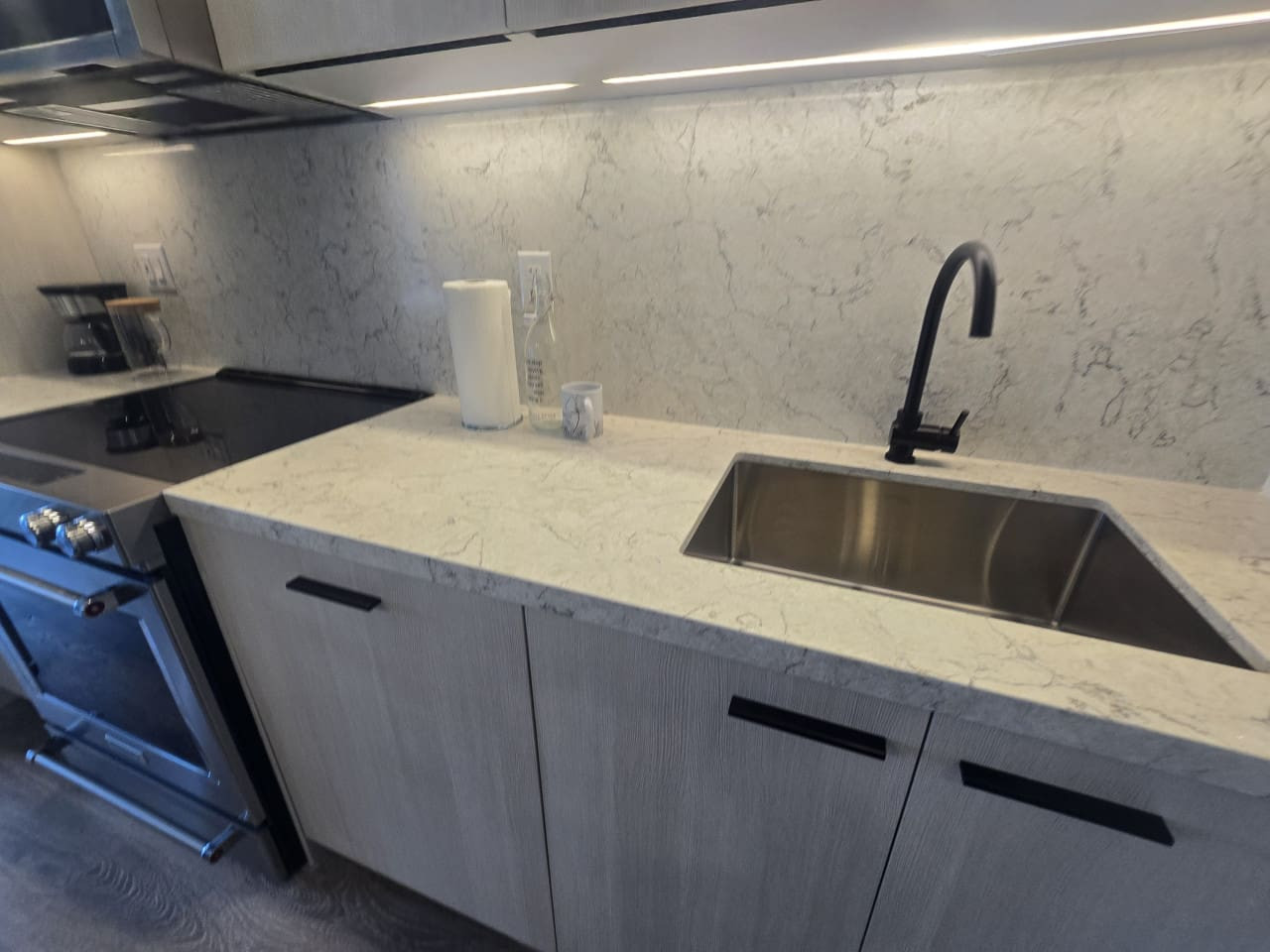 Unleash your culinary creativity in the sleek, modern kitchen, fully equipped with ample counter space and premium appliances. Whether preparing a quick snack or a gourmet meal, this kitchen caters to all your needs.