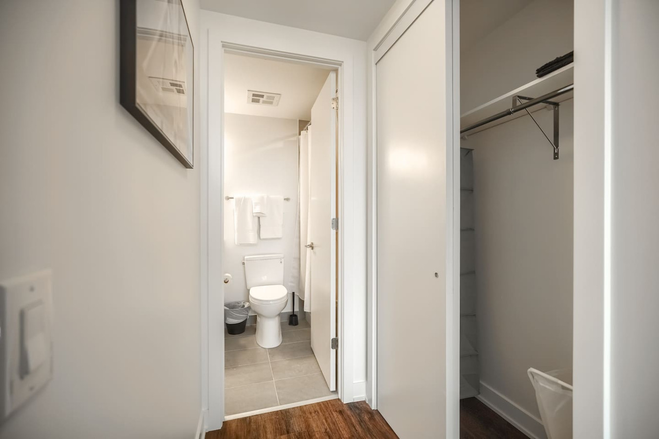 Relax in the peaceful ambiance of the spacious bedroom, designed for ultimate comfort. The queen-size bed offers a restful night’s sleep, while the large closet ensures ample storage. The modern, spa-like bathroom features sleek fixtures, offering a rejuvenating experience for the perfect start or end to your day.