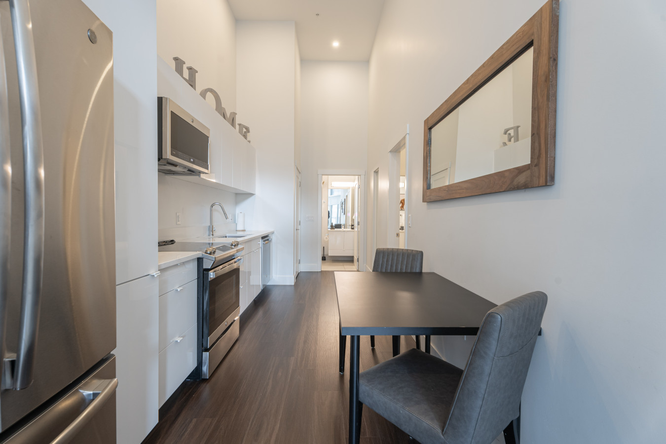 Relax in the thoughtfully crafted living space designed for ultimate comfort and style. Enjoy the Halifax skyline from the plush sofa or stream your favorite shows on the Smart TV. The open-concept layout provides a seamless and inviting atmosphere, perfect after a busy day.