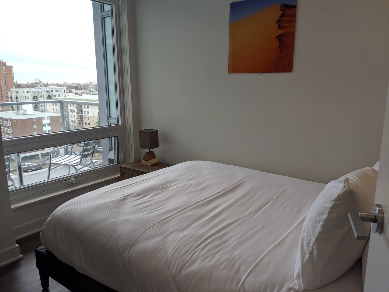 The second bedroom also includes a comfortable queen bed with fantastic skyline views, ensuring all guests experience restful slumber.