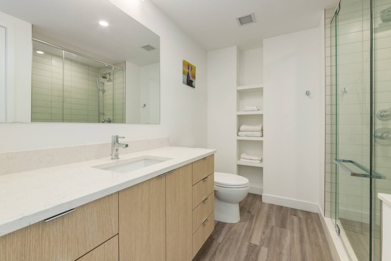 The bathrooms showcase a modern design with a chic vanity and a stand-alone shower. Fresh towels, starter toiletries, and a hairdryer are provided for your convenience. Every detail in this retreat is curated to deliver a blend of style, comfort, and practicality for an exceptional Airbnb experience.