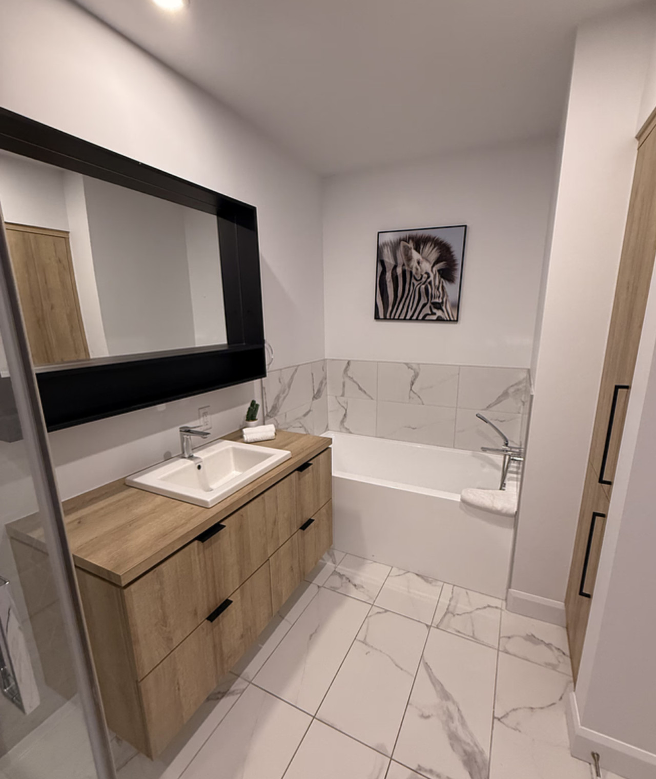 - Bathroom: 1 modern full bathroom with a tube/shower