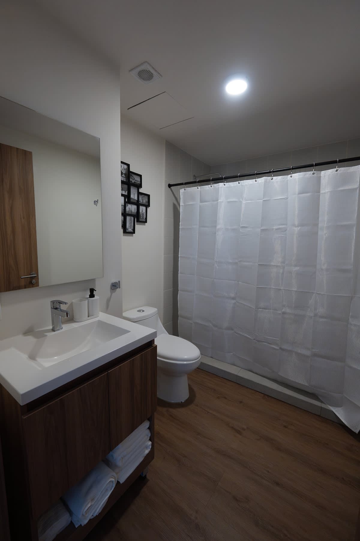 - Bathroom: modern full bathroom with a shower
