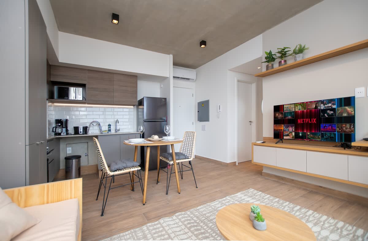 Estadia perfeita, me senti em casa. Anfitrião atencioso. O moço da recepção do horário da noite, foi muito querido e prestativo. Apartamento impecável.