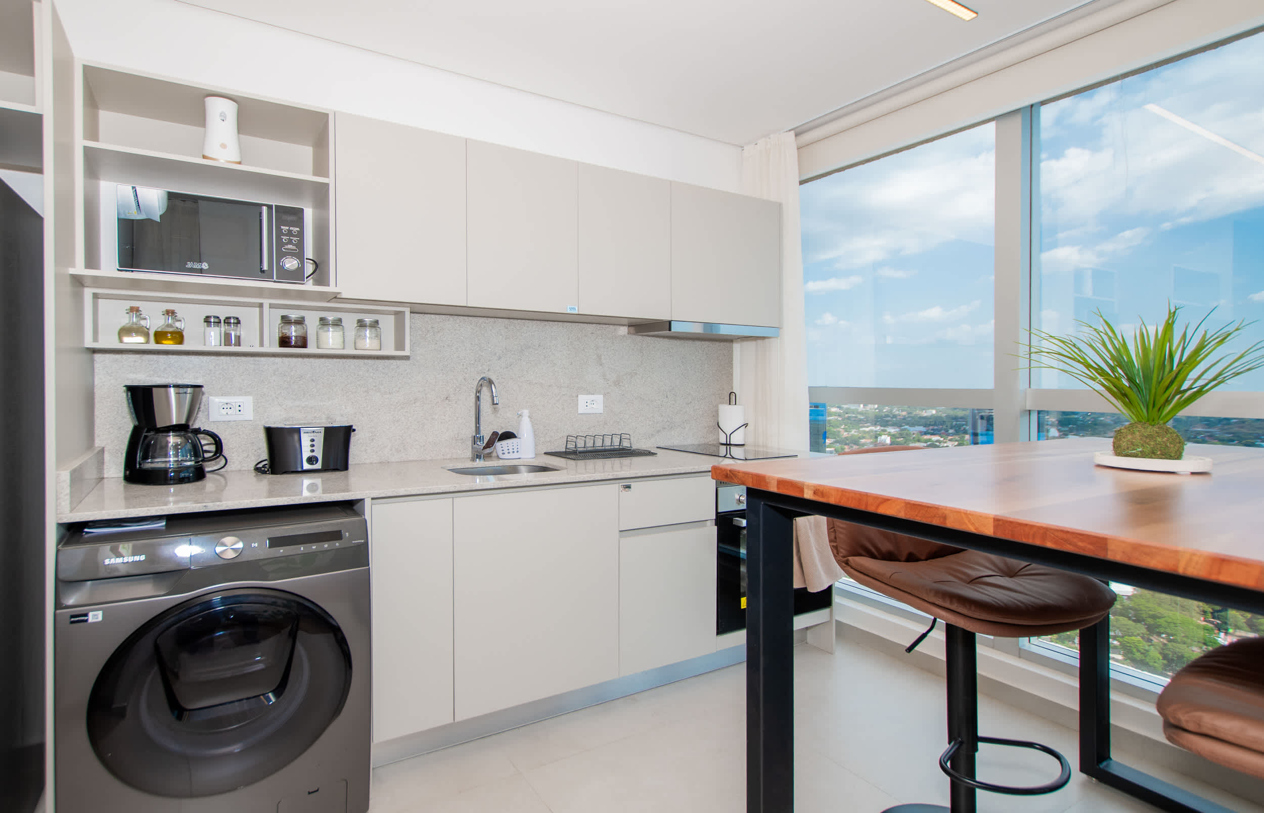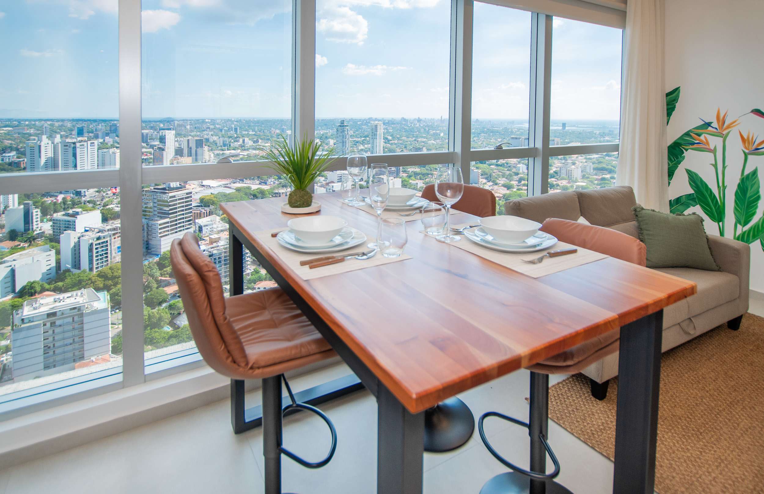 Experience elevated city living in this stylish 1-bedroom unit located in Petra Tower, the tallest residential building in Paraguay. Perfect for business travelers, couples, or solo guests, this space blends comfort, design, and hotel-style convenience in one of Asunción’s most exclusive areas.
