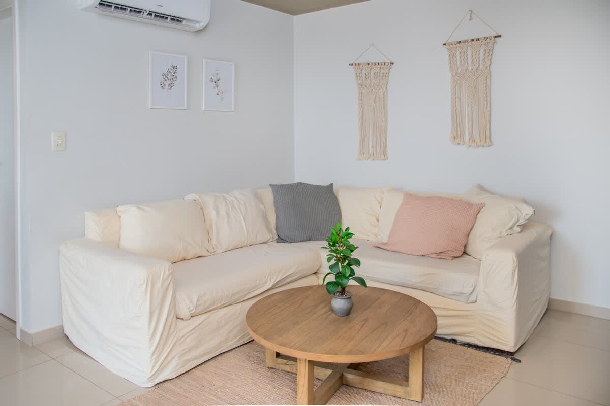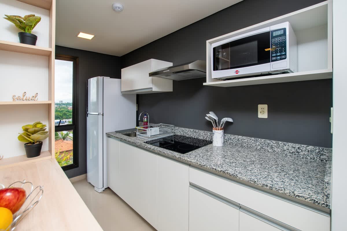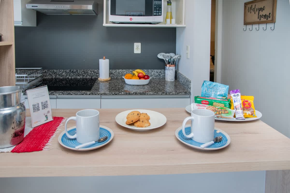 Departamento cómodo, limpio, contaba con las cosas básicas. Un punto es que no poseía horno, pero en nuestro caso fue un punto porque estuvimos mucho tiempo y debíamos cocinar, pero contaba con el resto de las cosas de cocina. El barrio nos gustó, muy tranquilo.