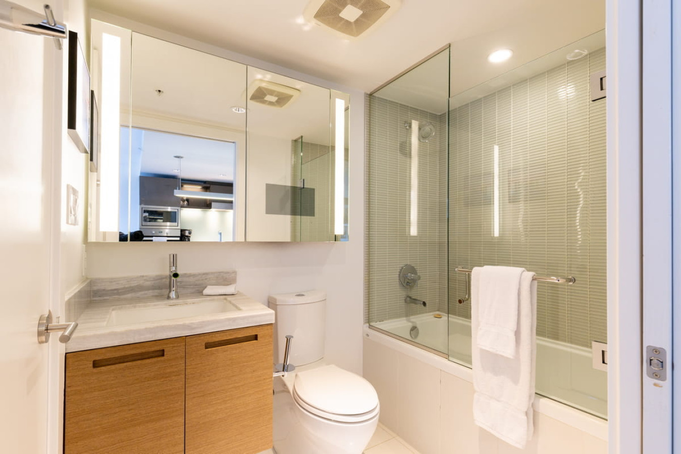 – Bathroom: modern full bathroom with a shower/tub