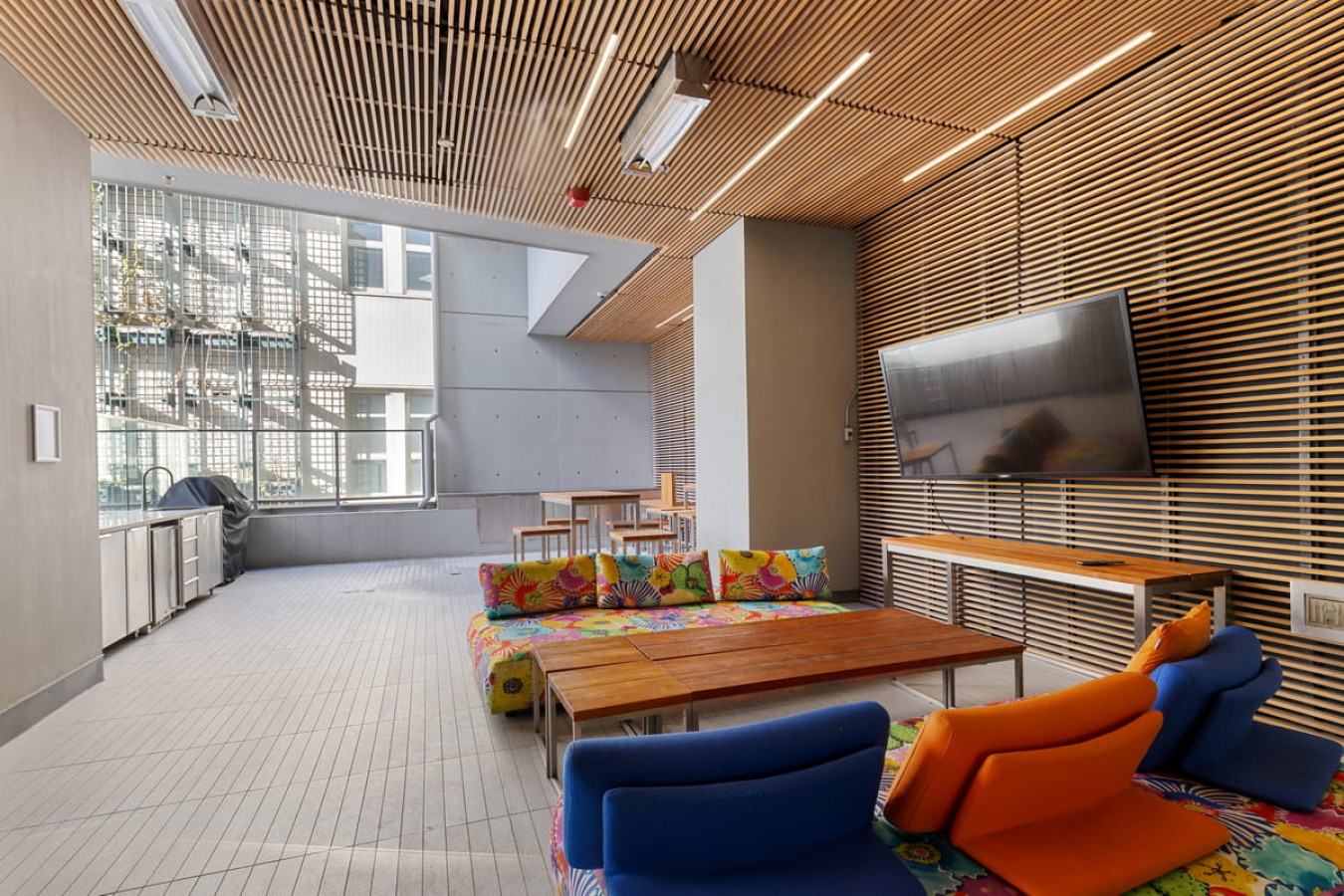 Enjoy the outdoor pool, offering a peaceful setting for swimming or lounging. It’s the perfect place to unwind while soaking in the city views.