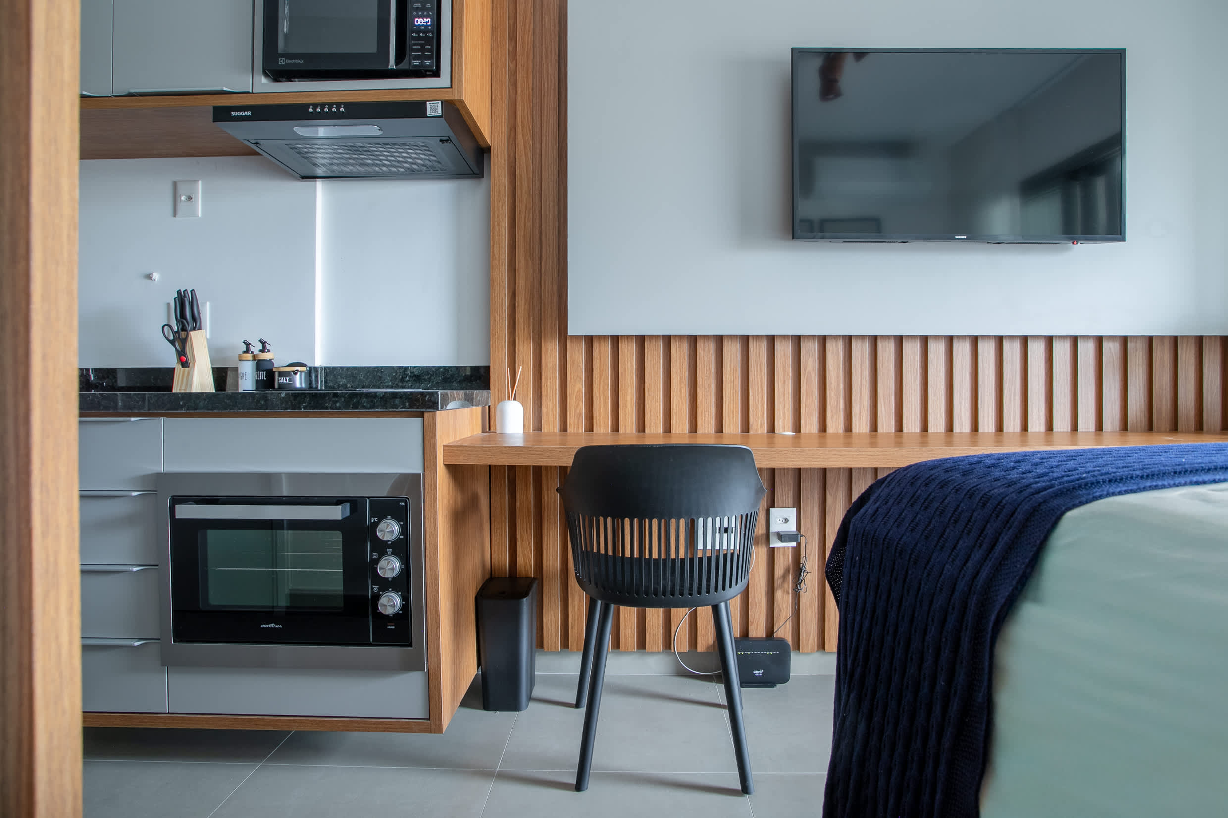 Stay in the heart of Moema at this modern studio in On Jurupis, ideal for business travelers, couples, or solo guests. The bright, well-designed space features a private balcony with city views and a fully equipped kitchenette.