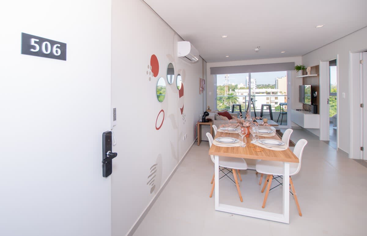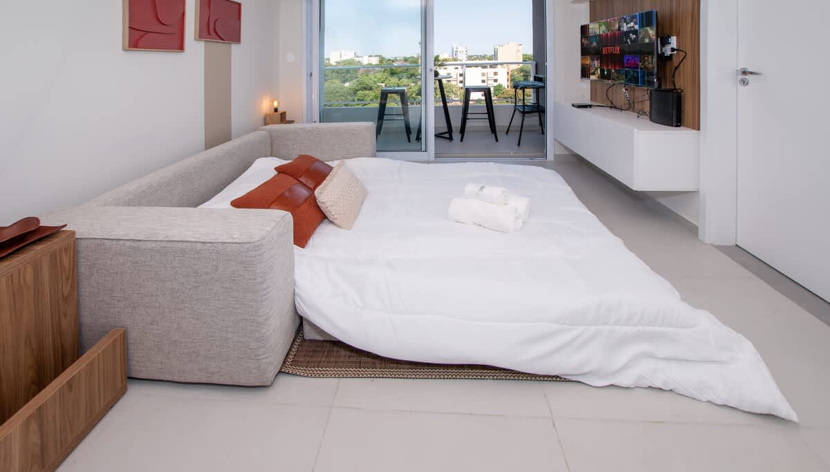 Welcome to our stylish 1-bedroom apartment in Recoleta, one of Asuncion’s premier neighborhoods. Enjoy a safe area with excellent dining options nearby. Just 500 meters from Shopping Mariscal and Villamorra, you’ll be close to the city’s best shoppings. Our new building, designed for Airbnb guests, features a 24-hour concierge, swimming pool, gym, and a terrace grill/Coworking area for up to 12 people. Experience comfort and convenience with beautiful natural light and modern amenities.
