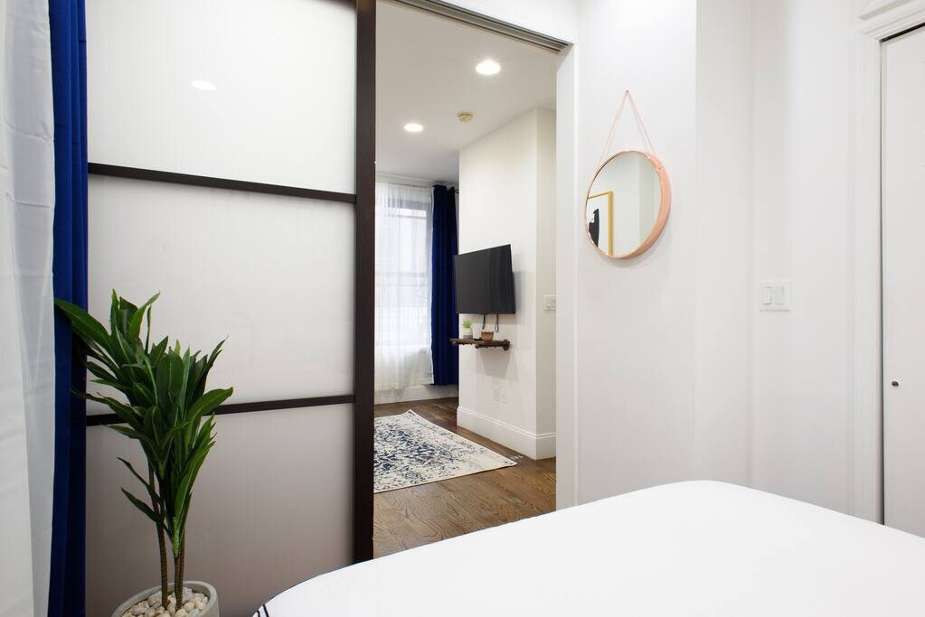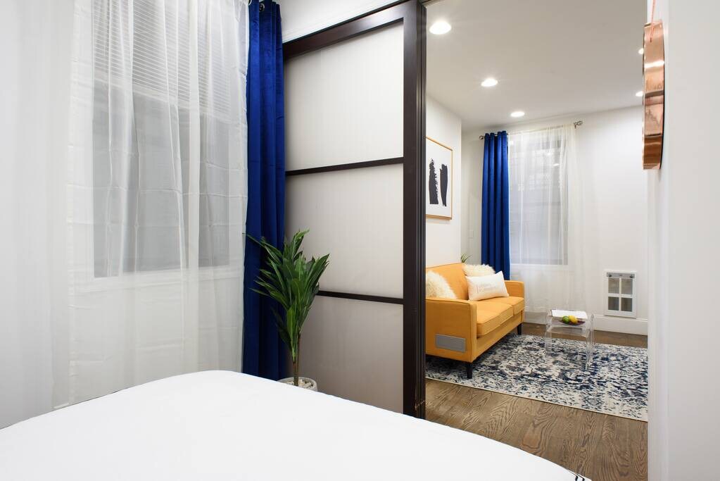 This is a brand new, gut-renovated one-bedroom apartment located at 69 Clinton Street in a boutique building in Manhattan. The unit has a modern and sleek design for complete comfort and style. The living room has a couch, a 43″ HDTV Smart TV, WiFi, and air conditioning (in the summer). The kitchenette is fully equipped and perfect for preparing meals and snacks. The bedroom has a full-size bed with a CoolGel Mattress, the latest quality sleep technology. The bathroom is brand new and full of marble. The apartment is fully furnished with all new furniture, and guests will receive clean linens and towels upon arrival.