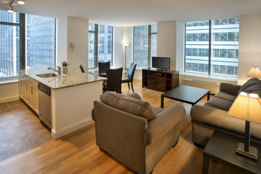 Have the chance to stay in the iconic Financial District of New York City, specifically at Hanover Square — a bustling hub of finance and business. This fabulous building offers stunning city views and places some of the best restaurants, cafés, and shopping destinations right at your fingertips.