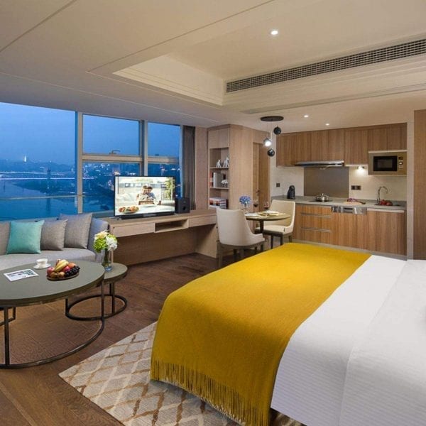 Ascott Nanbin Chongqing is located in the heart of the prestigious Nanbin Road. With its back against the Nanshan Mountain, the residence overlooks the panoramic views of the Yangtze River. The Yuzhong Peninsula is an ideal location to view the cascading mountains that surround Chongqing. In addition, the residence offers comprehensive services and amenities, as well as a convenient base for travel. It is a stone’s throw away from large high-end shopping malls and surrounded by historical landmarks and famous attractions, such as the cable car across the Yangtze and Danzishi Old Street. Ascott Nanbin Chongqing is within walking distance of the Dongyuan 1891 Shopping Mall. The residence is about 17 17-kilometer drive to Chongqing North Railway Station and about 26 26-kilometer drive to Chongqing Jiangbei International Airport.