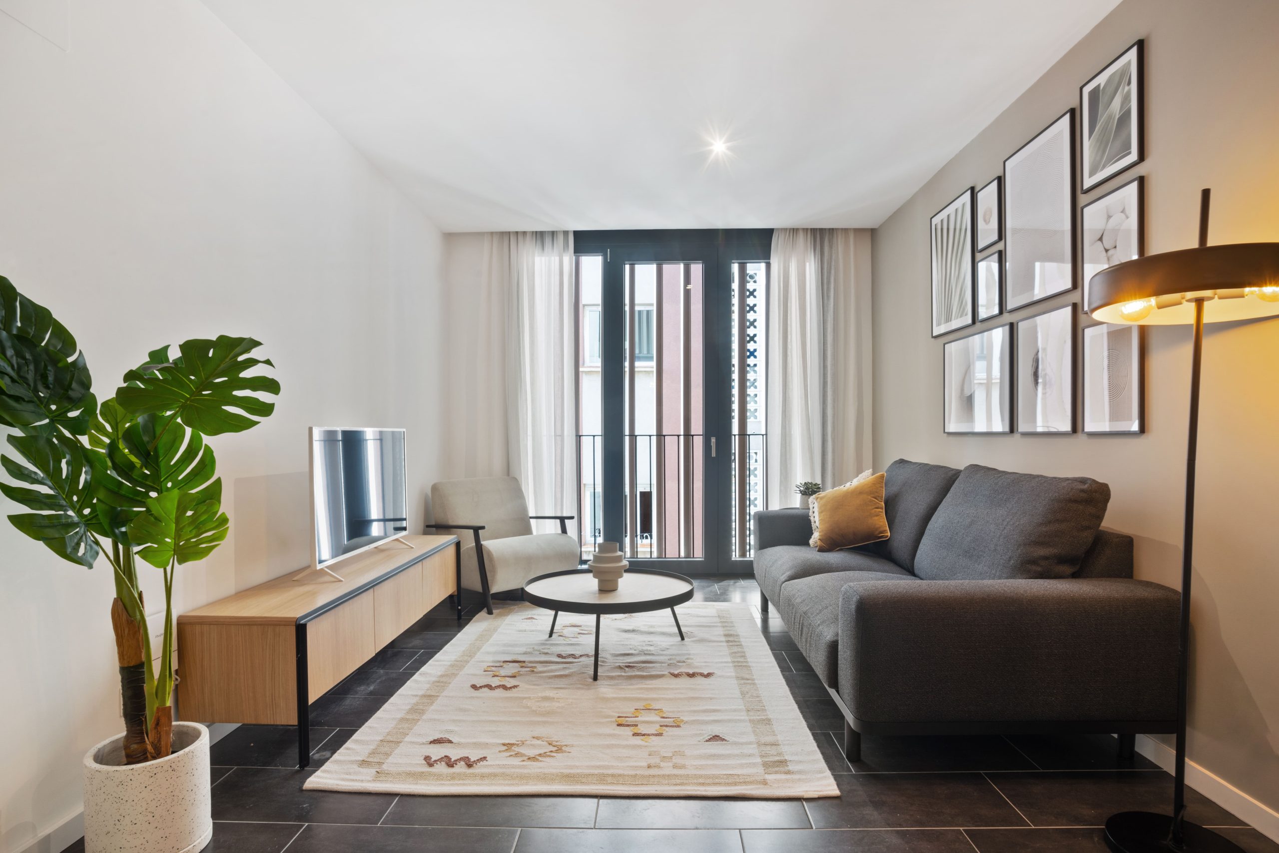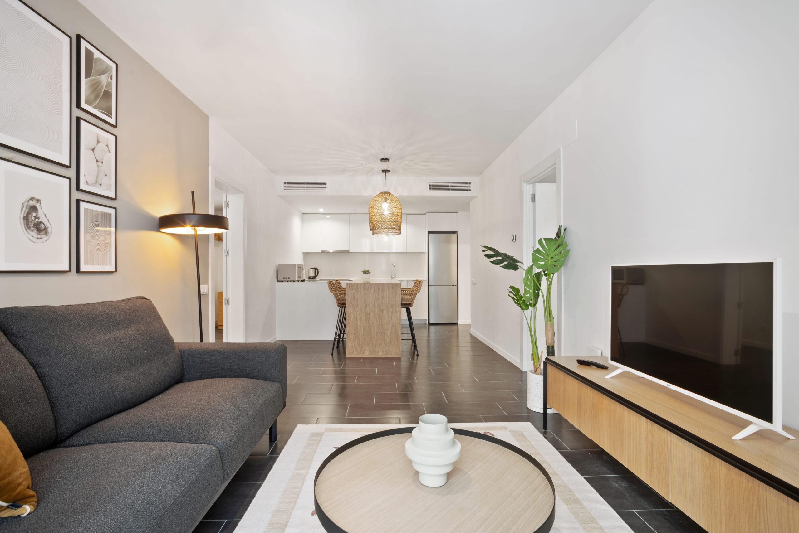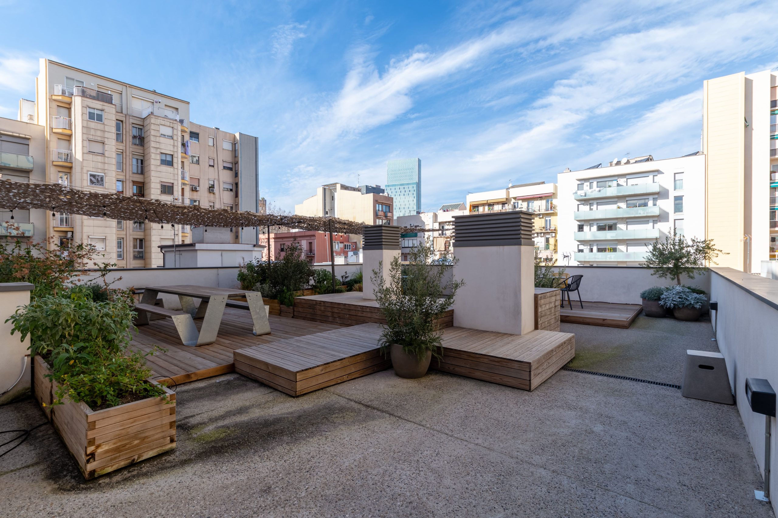 Modern apartments in Sant Marti, Barcelona. Enjoy our exclusive shared spaces like a terrace, patio, and gym. This contemporary building has two beautiful gardens ideal for enjoying tea, reading a book or relaxing after a long day at work. The building also has a gym and private parking. The apartment has two spacious bedrooms and two bathrooms, both en suite, with a dressing area; its modern decoration gives off an air of sobriety but with guaranteed comfort and warmth.