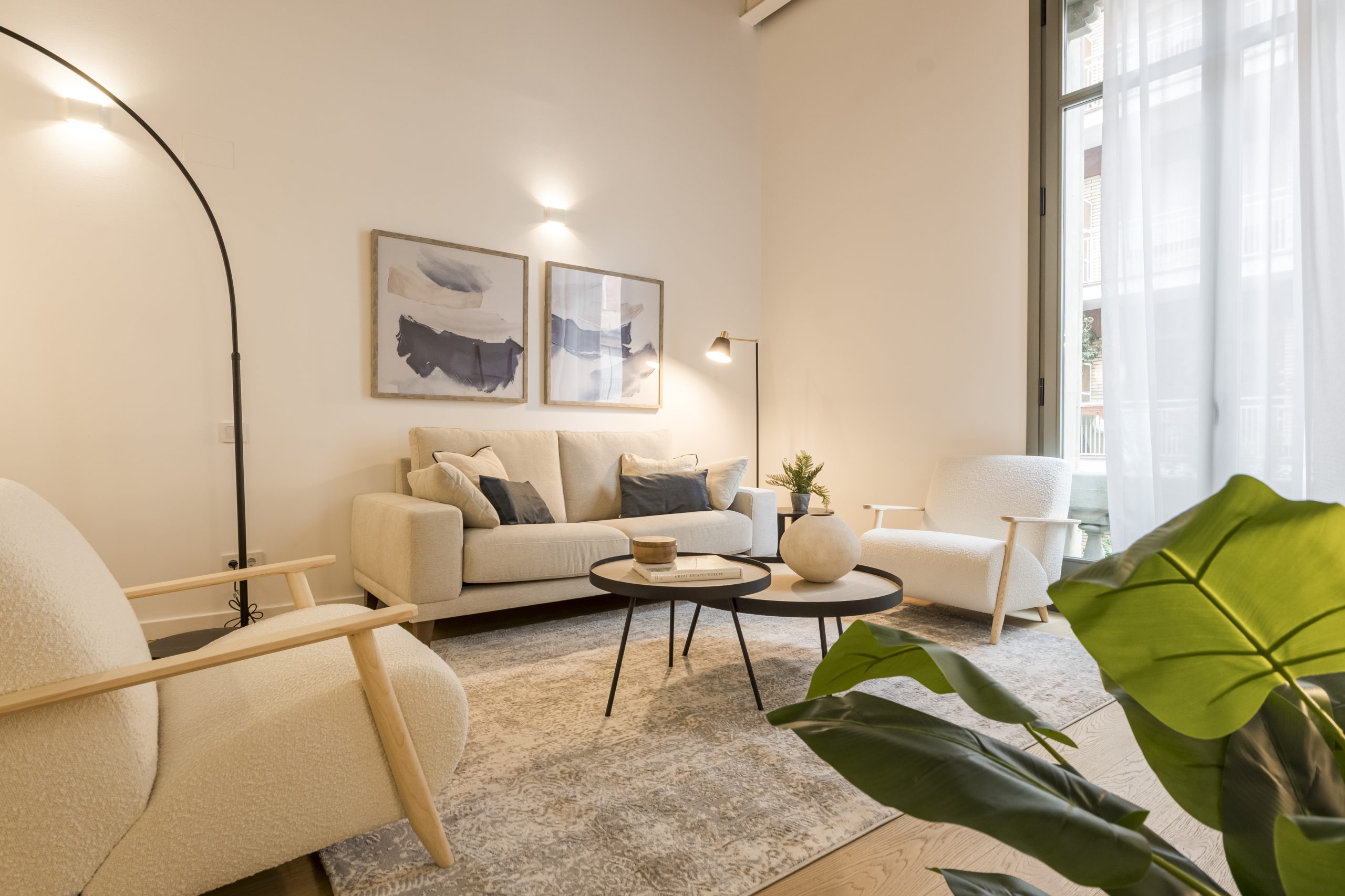 Caterina Editorial’s diagonal apartments in Gràcia, Barcelona. It is offering 2 and 3-bedroom layouts in a vibrant artistic community. Rent this beautiful apartment with services included a few blocks from Paseo de Gracia with Diagonal, one of the best areas of Barcelona; enjoy the charms that have the neighbourhood of grace and the splendour of the Eixample, and enjoy the pedestrian street of the council of hundreds full of bars, restaurants and local stores. The apartment has bedrooms, a modern bathroom and a work area; its cozy style will make you fall in love with it! It is equipped with a dishwasher, washing machine and dryer. It has a perfectly functioning AC and heating; it comes with a fully equipped kitchen, linens and bedding. Price includes weekly cleaning, responsible consumption of utilities (water, electricity, gas), high-speed internet, maintenance, and 24/7 guest assistance.