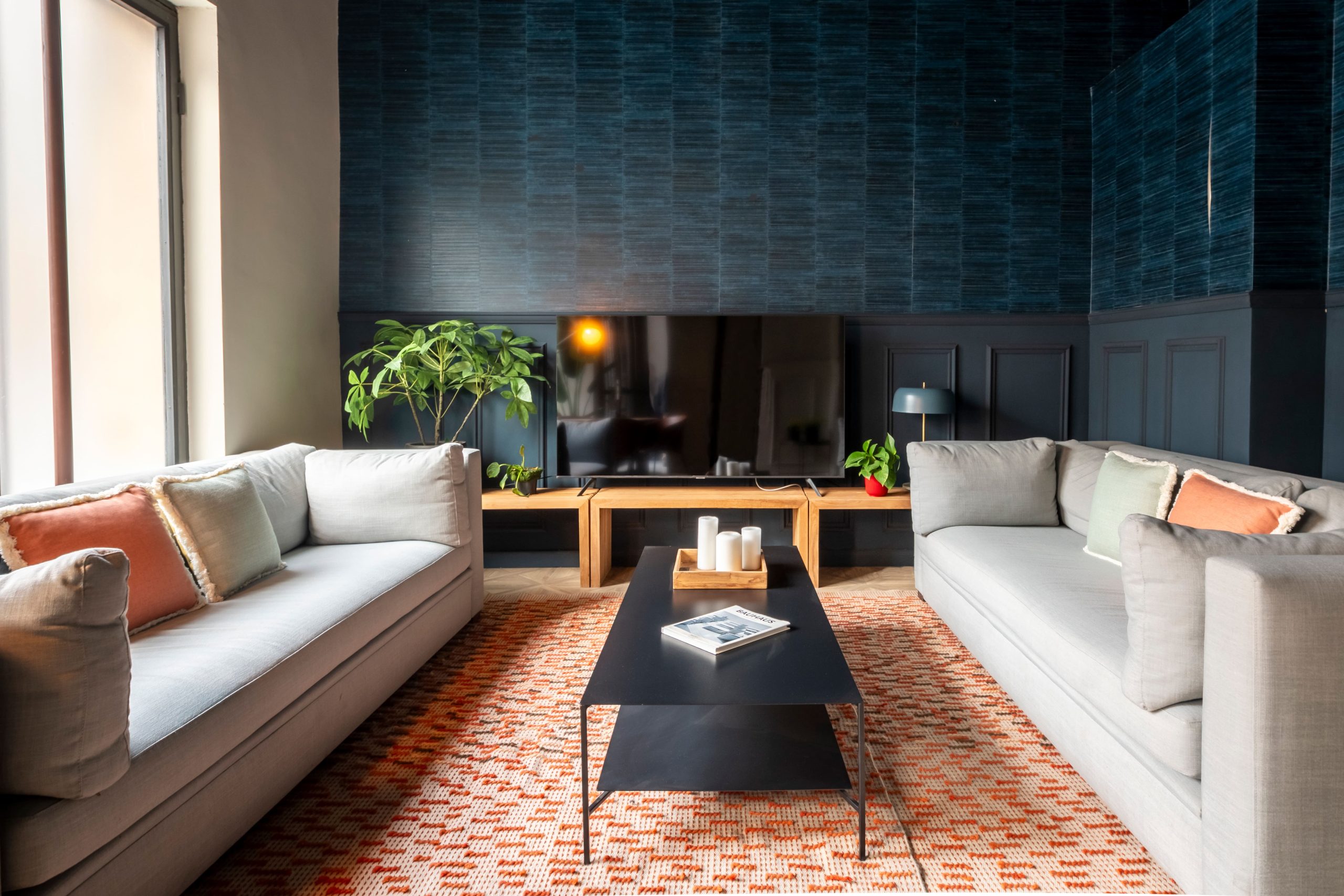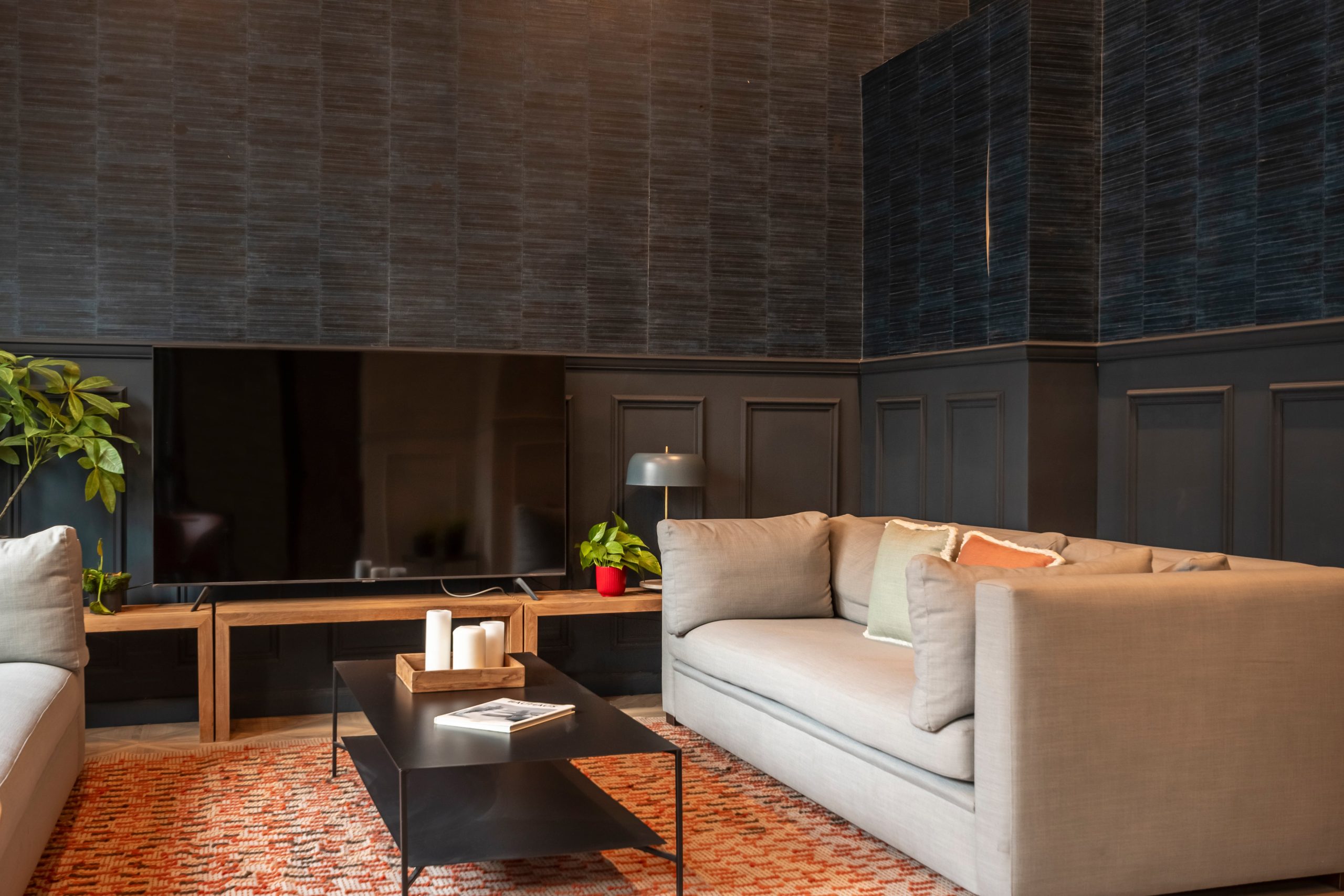 Elegant furnished one-bedroom apartment, designed with the travelling professional in mind, featuring networking opportunities on a stunning rooftop terrace. The building has a rooftop and a coworking space, offering the perfect blend of work, leisure, and urban living.