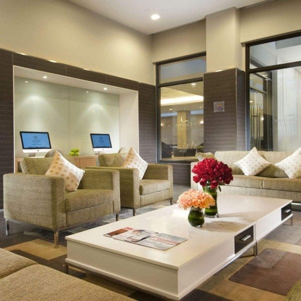 The serviced residence is located within a mixed-development complex, adjacent to several residential, retail, and food outlets. The lobby and retail stores are on the ground floor of blocks C2 and C3, while the apartments are directly above them.