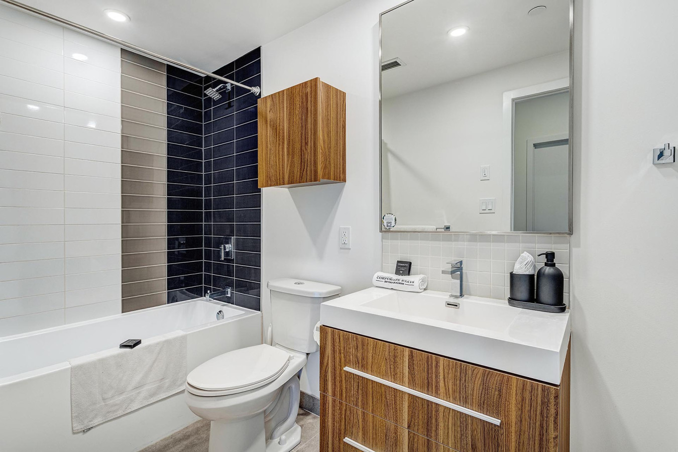 Retreat to your serene sanctuary, featuring one beautifully appointed bedroom. The bedroom boasts breathtaking skyline views and is thoughtfully designed for ultimate relaxation. Sink into the luxurious king or queen-size bed (upon availability), enveloped in comfort, and enjoy ample closet space with a spa-like bathroom all complemented by plush towels and essential starter toiletries.