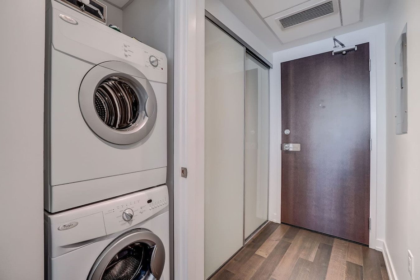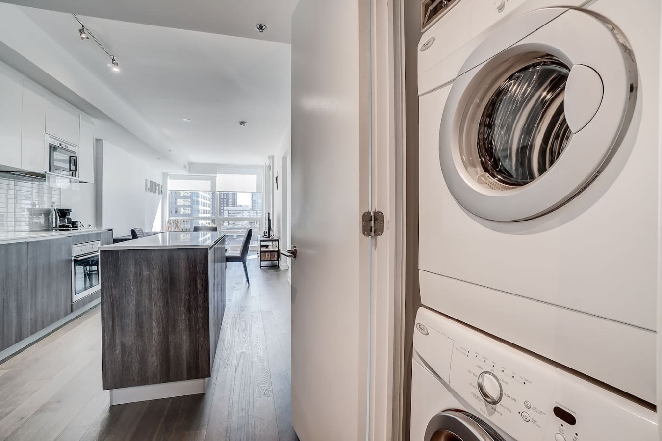 In-unit laundry with a full-size washer and dryer offers convenient access to laundry services during your stay.