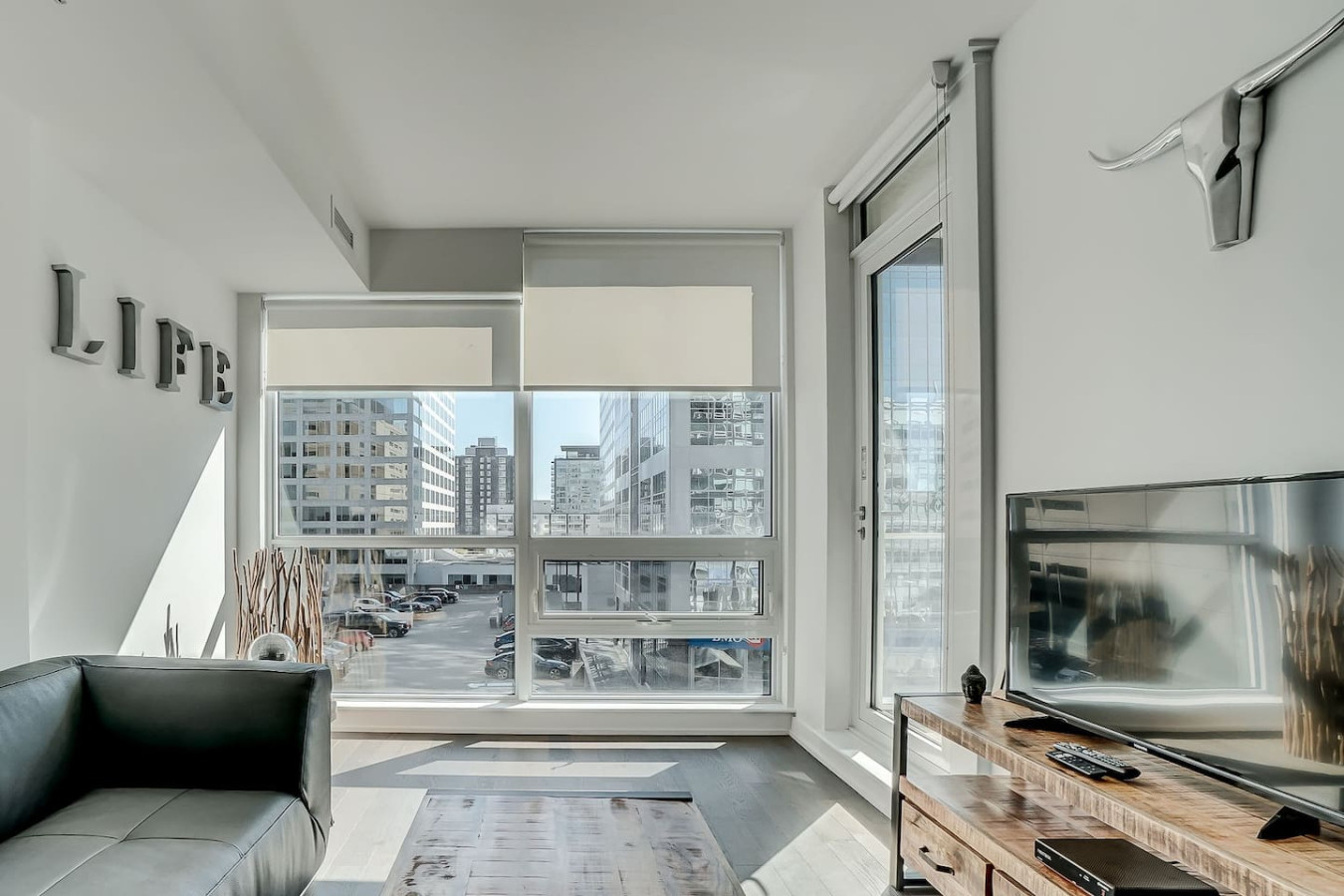 – Private balcony offering stunning skyline views