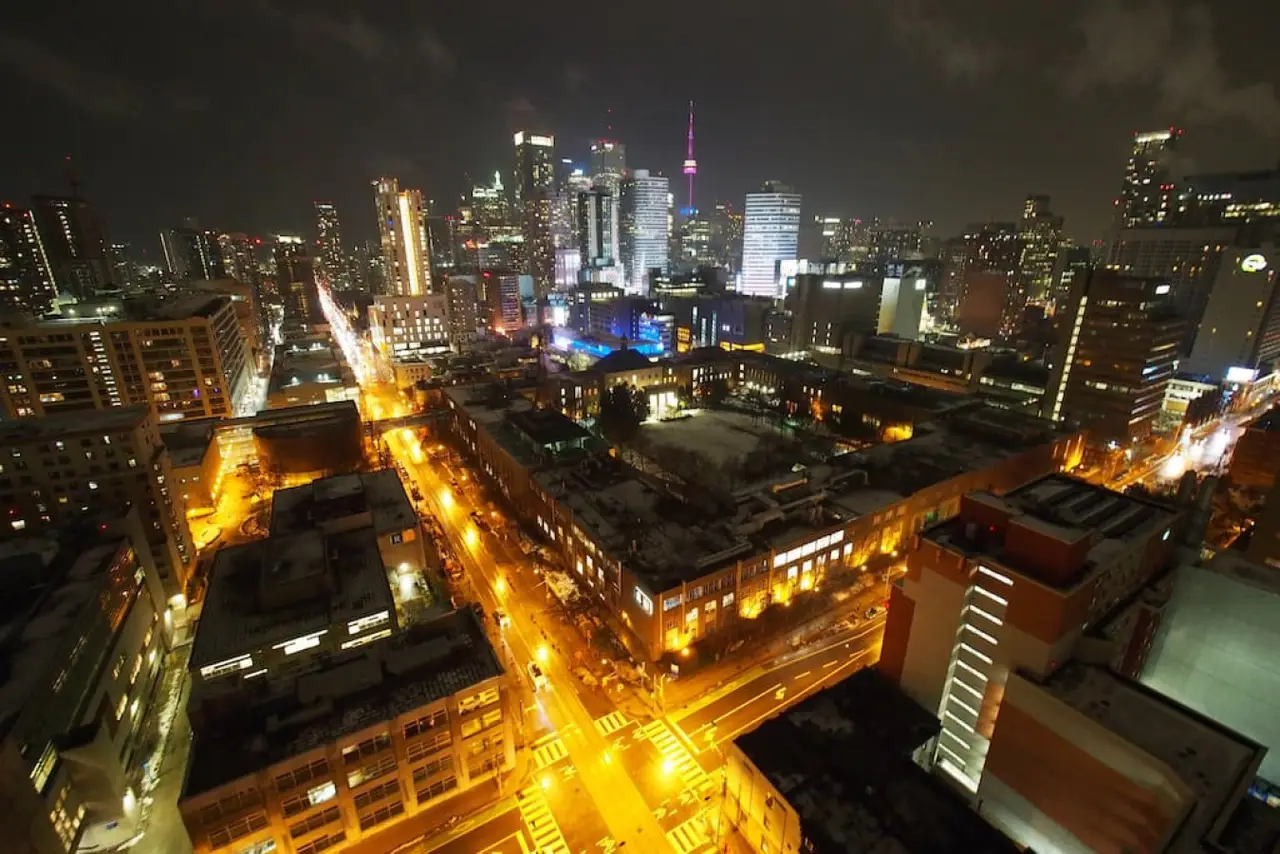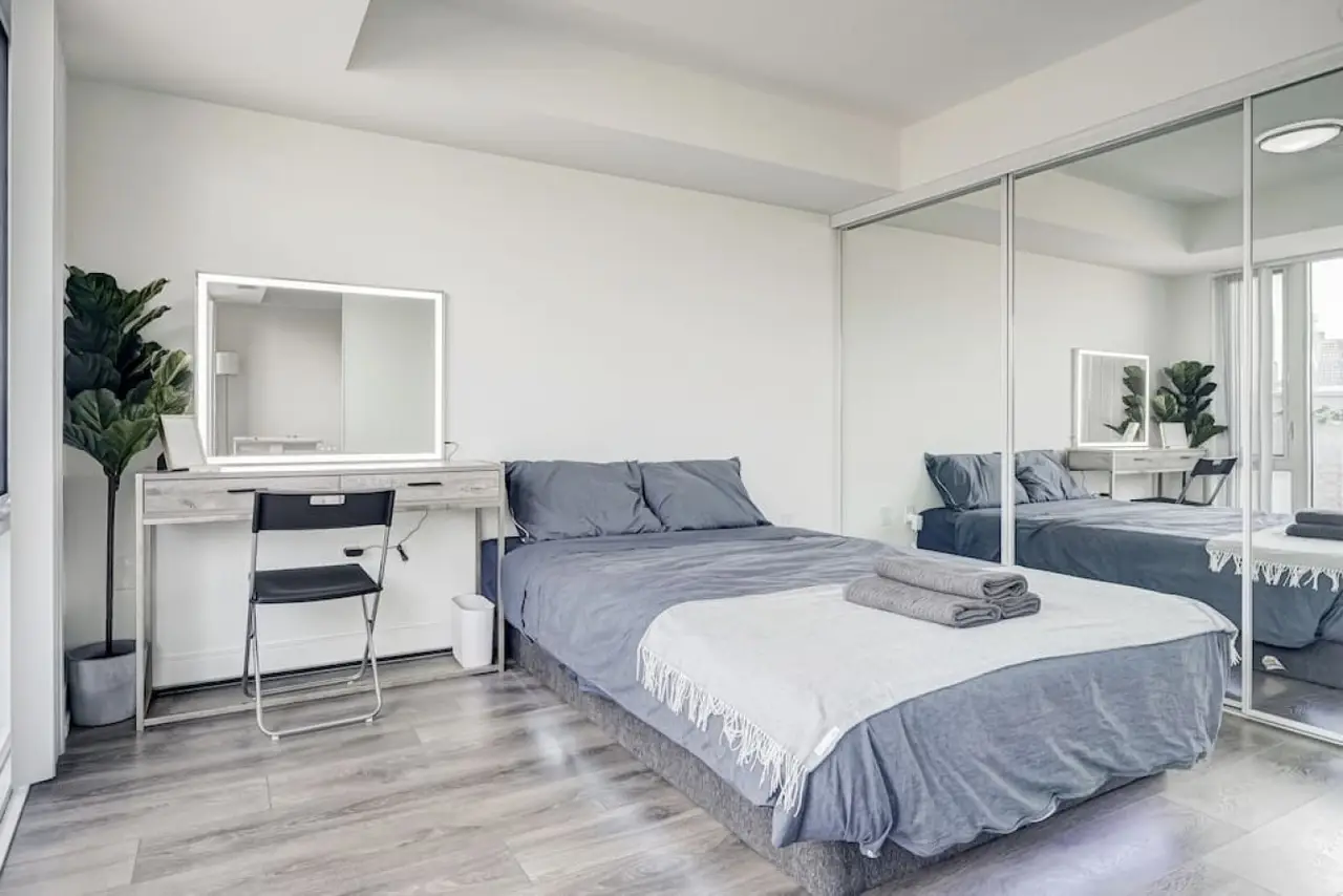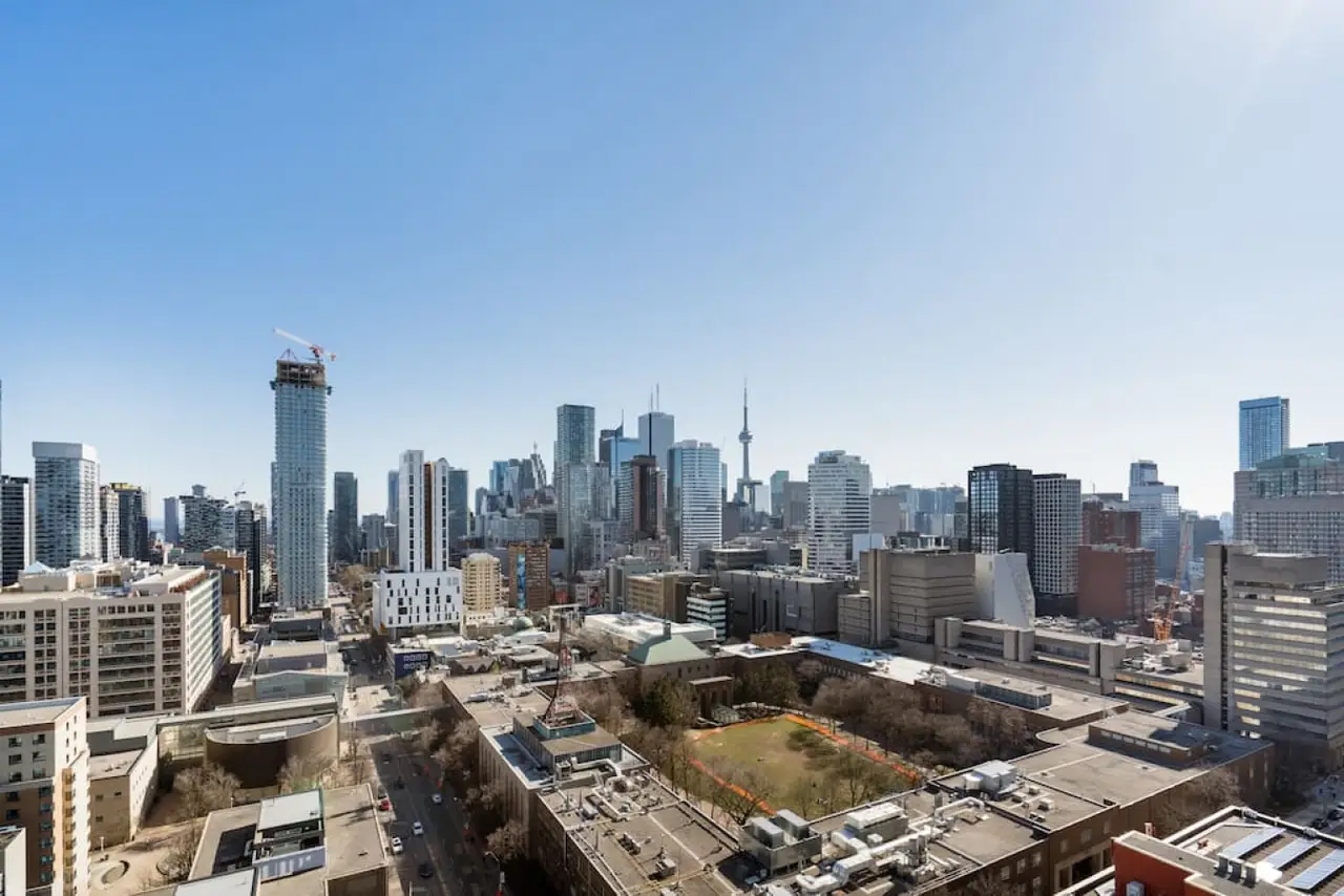 This suite is located in the heart of downtown Toronto and only steps away from College TTC subway station, Eaton Centre, Dundas Square, and Ryerson University. It features a Queen bed and full kitchen, high-speed WiFi, and access to Netflix, Disney Plus, Prime Video, and Apple TV, with no cable TV.