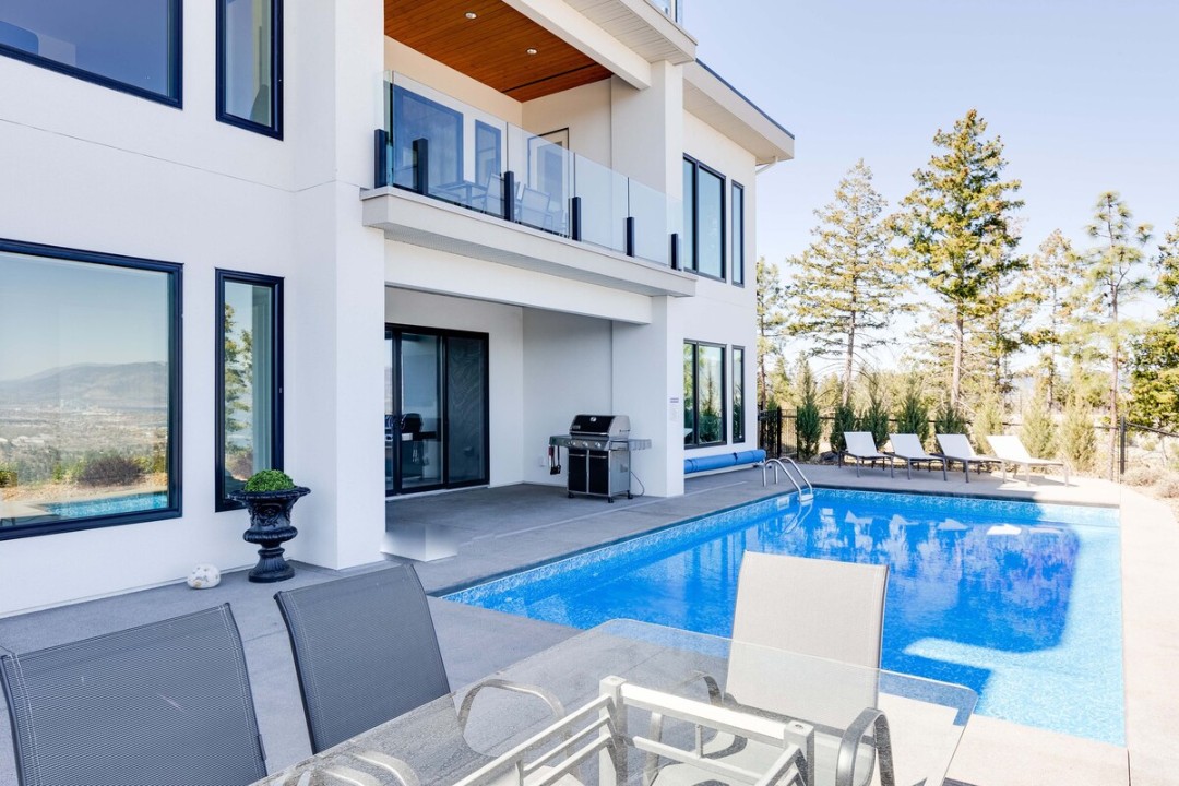 This stunning, custom-built furnished modern beach house in Kelowna boasts over 6200 square feet of exquisite space with a unique open floor plan walled with expansive windows designed to capitalize on the gorgeous lake views. Endless opportunities to create the perfect family vacation await you with 5 FULL ENSUITES for added space and privacy.