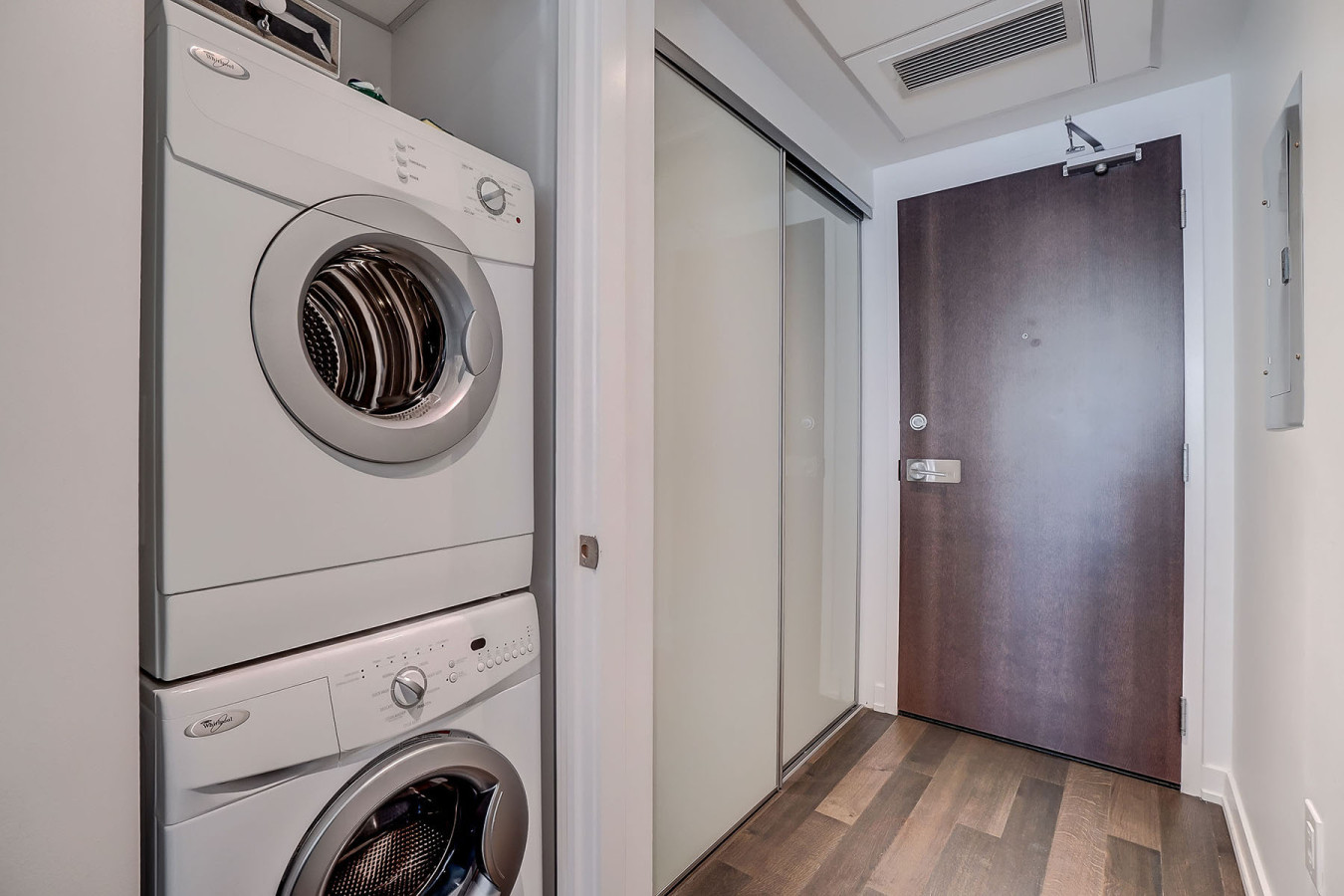 A standout feature of this apartment is its private laundry room, equipped with a full-sized washer and dryer, providing ultimate convenience for managing laundry without having to step outside.