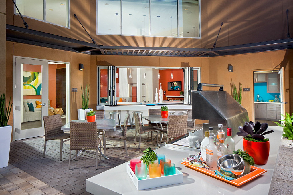 The community comprises one- and two-bedroom floor plans, including 15 townhome-style residences. Each home is finished in a contemporary style with quartz countertops, stainless steel appliances, and hardwood-style vinyl flooring. The spacious interiors include a fully equipped kitchen and an in-home washer and dryer. Select residences also enjoy a private patio or balcony to extend your living space outdoors. Just outside your door, various vibrant social spaces complement your home. Breathe in the fresh air in your choice of six uniquely themed courtyards or from our one-acre greenway with a playground and dog park. Soak up the sun on our rooftop deck with 20,000 square feet of amenity space featuring a club room, fitness center, multiple BBQ areas, fireplace, pool, and spa.