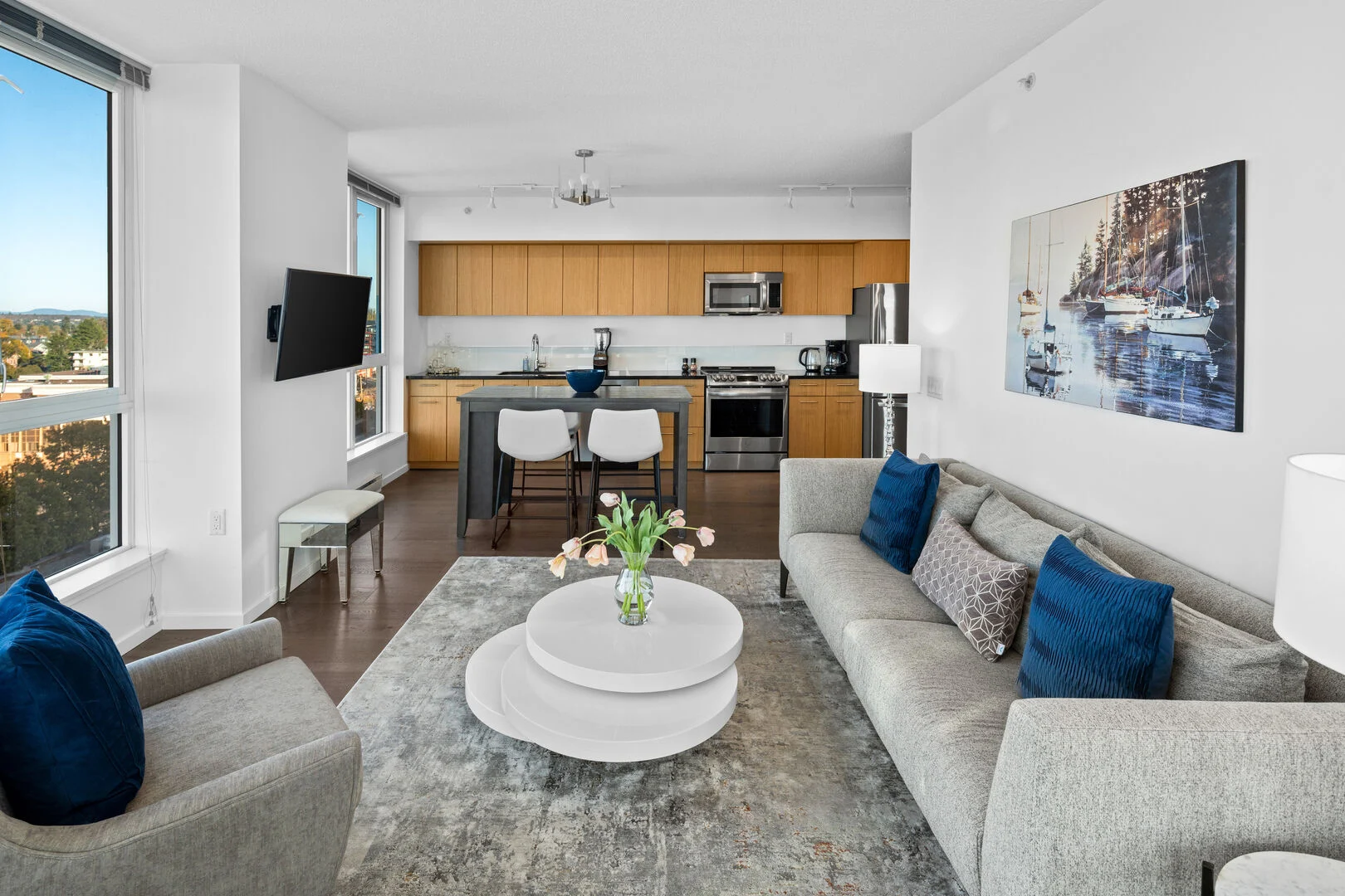 Our bright and spacious one-bedroom unit features floor-to-ceiling windows, granite countertops, generous closets, a private balcony, and stainless steel kitchen appliances. Revel in the extra privacy of our corner-facing unit with expansive, light-filled windows. This brand-new listing boasts sophisticated styling, well-appointed furniture, and professional linen service. Experience the best of Victoria in style and comfort!