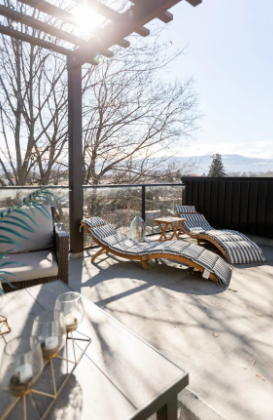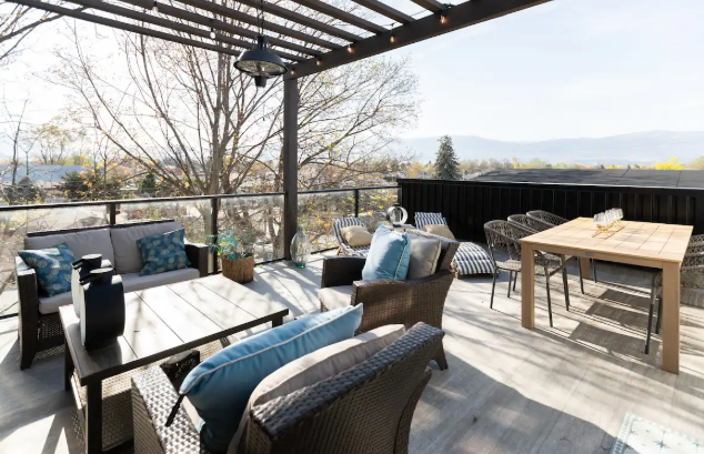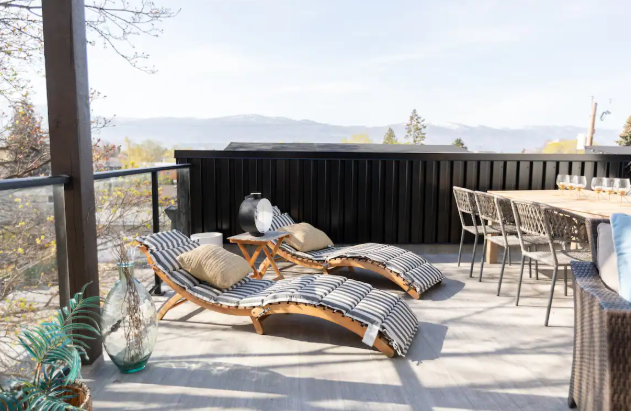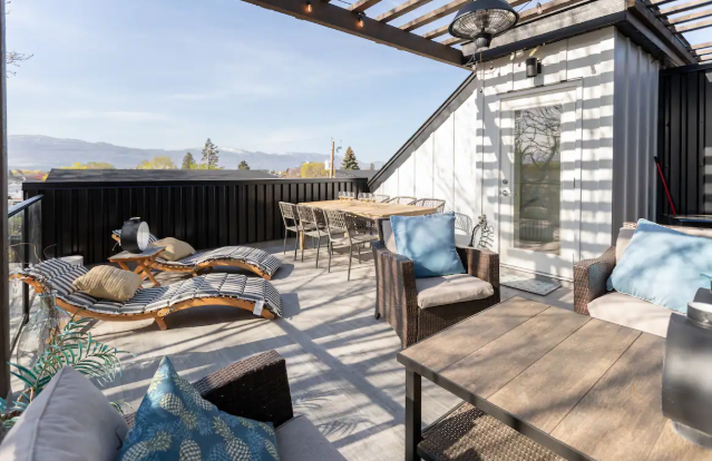 Welcome to our cozy two-bedroom 2.5, 2.5-bathroom townhouse in downtown Kelowna’s heart. Our fully stocked kitchen with upgraded quartz counters is perfect for cooking delicious meals during your stay. We provide all the essentials you need, including soft linens and comfortable Haven beds, to ensure you have a restful sleep. Enjoy the stunning and private rooftop patio with string lighting and cozy lounge seats, as well as an outdoor dining table.