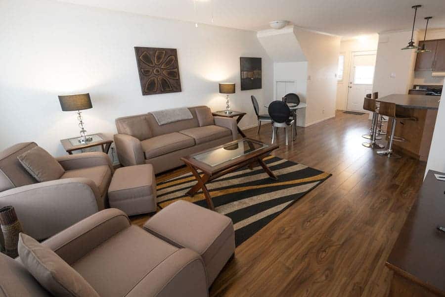 For Saskatoon furnished housing, this property offers you spectacular options. This fully furnished townhouse suite in Saskatoon is 1200 square feet and features three bedrooms, 1.5 bathrooms, and a wonderful open-concept kitchen and living space. The master bedroom in this house has a queen-size bed and a walk-in closet. There are 2 additional bedrooms with 2 twin-size beds and ample storage.