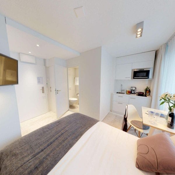 Zug is a popular destination for business travellers thanks to the city”s prospering economy. The proximity to the Alps and beautiful Lake Zug, as well as the well-preserved old town, also make the Swiss town a popular summer retreat for tourists. Whatever the purpose of your stay, the central location of VISIONAPARTMENTS in Zug offers easy access to all key amenities, including shops, restaurants, pharmacies, cinemas and everything the city has to offer. The bus which departs from the doorstep takes guests to the city centre or the shore of Lake Zug in less than 10 minutes. What is more, Zug central railway station can be reached in just 8 minutes on foot. From there, long-distance trains provide fast connections to Zurich, Lugano, Lucerne or Milan.