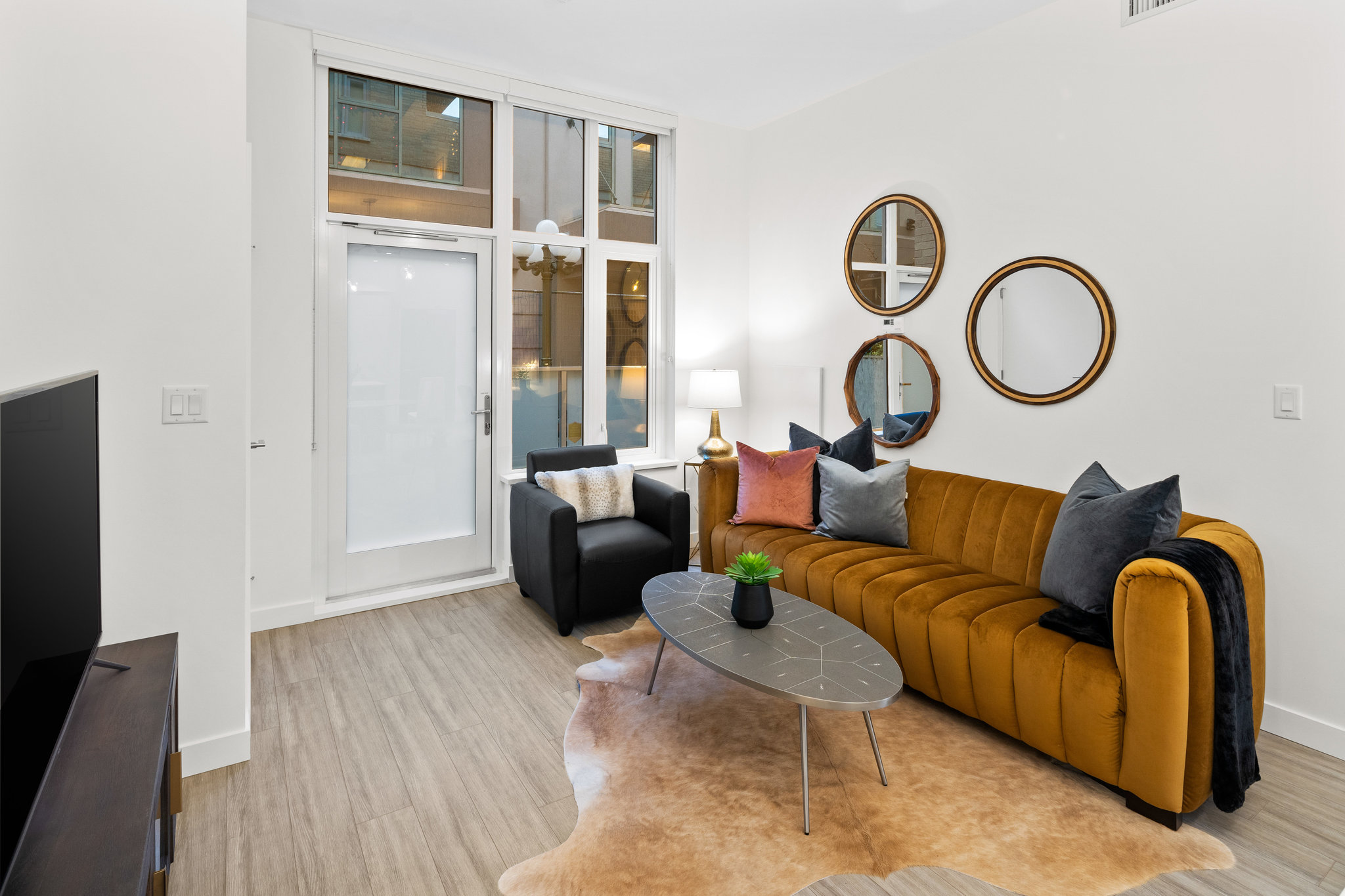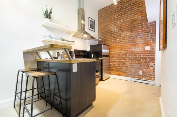 The Heritage Studio Loft offers an open-concept layout, expertly designed to blend functionality with style and comfort while highlighting natural charms like high ceilings and exposed brick. Sleep soundly on a cushiony queen-size bed, with a convertible sofa bed for additional space. Cook quickly in the fully equipped kitchen featuring premium stainless steel appliances and high-quality cooking essentials.