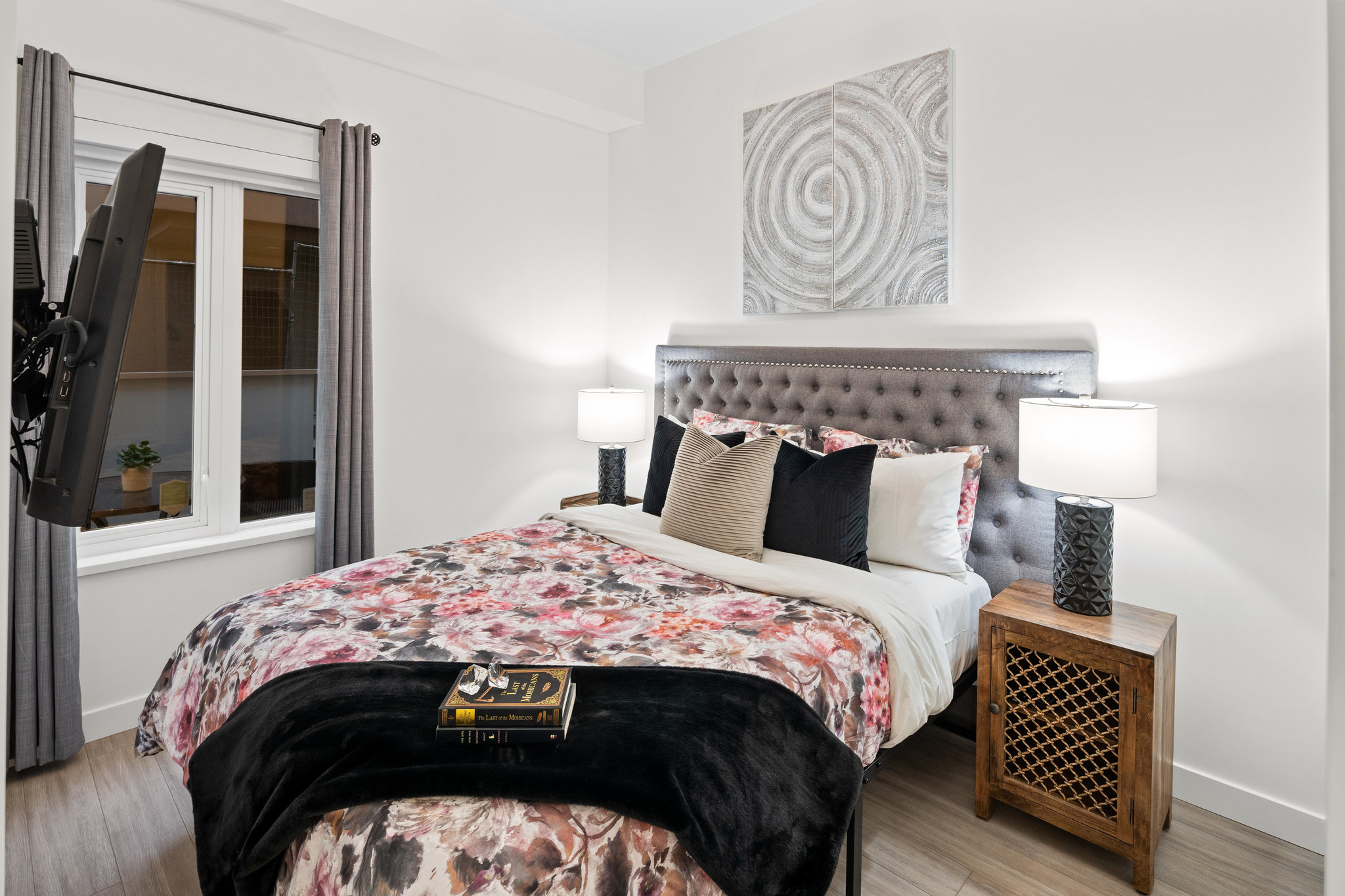 Step outside to the building’s rooftop patio and enjoy breathtaking panoramic city views. The Lesier Building also boasts historical significance; the Canadian Register of Historic Places notes its “conservative, high-quality High Victorian exterior and functionalist interior elements,” reflecting the commercial success of its original owner. Experience the perfect blend of history and modern comfort at the Heritage Studio Loft.