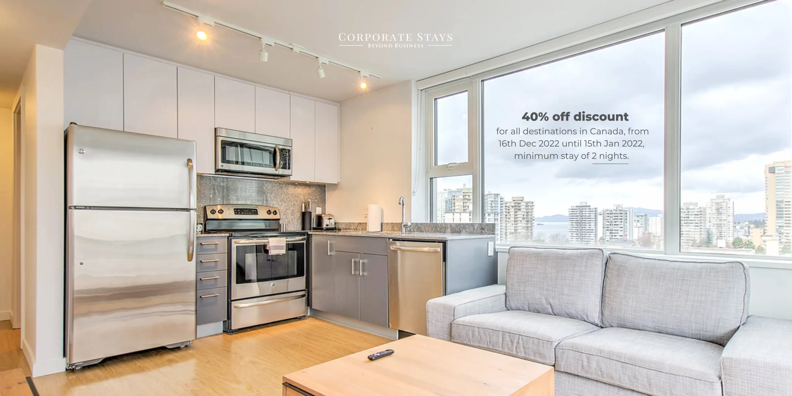 Keep checking our Instagram for updates on our most recent winter luxury condominiums deals. This winter, we offer a 40% discount on all apartments across Canada. Additionally, you can view more information about our corporate housing, including the facilities and services we offer, on our website.