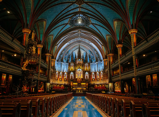 Its stained glass windows, chapel chair rows, and deep blue roof decorated with golden stars attract over 11 million visitors per year, making it the most visited site in Montreal.