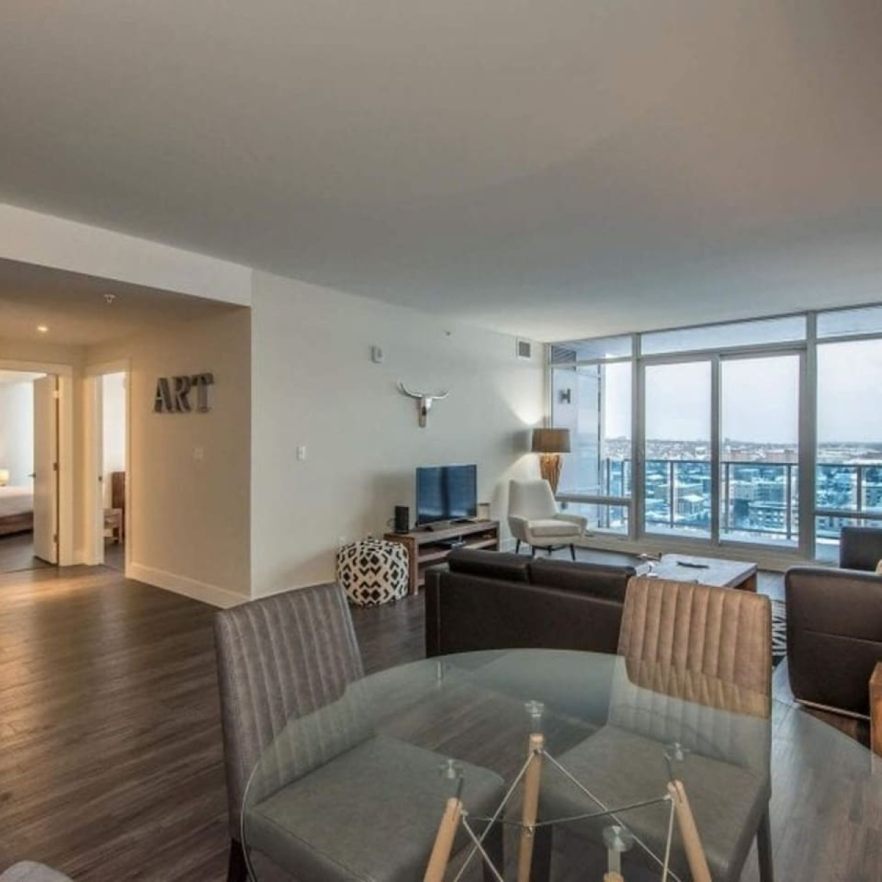 Welcome to your stylish urban oasis in the heart of Halifax! This chic one-bedroom apartment boasts an open-concept design that perfectly balances comfort and elegance. Relax on the cozy sofa while enjoying stunning skyline views, or unwind with your favorite shows on the Smart TV. The modern decor and spacious layout make it an ideal place to recharge after exploring the vibrant city.